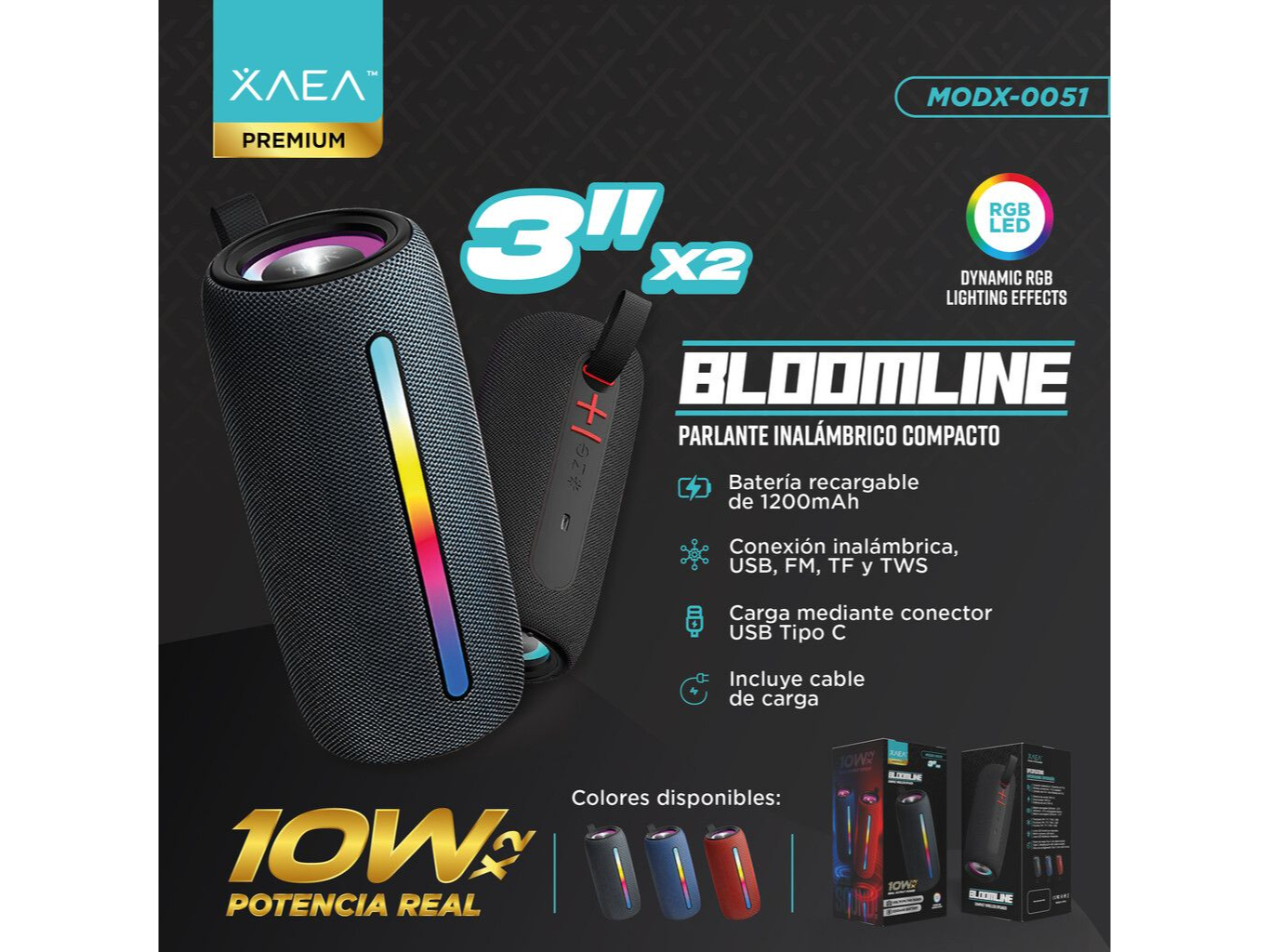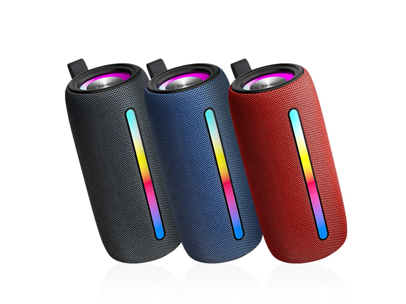 Parlante inalámbrico compacto con potencia real de 10W, sonido potente y luces RGB dinámicas. Cuenta con batería recargable de 1200 mAh, conexión Bluetooth, USB, FM, TF y función TWS para emparejar dos parlantes. Carga por USB Tipo C.