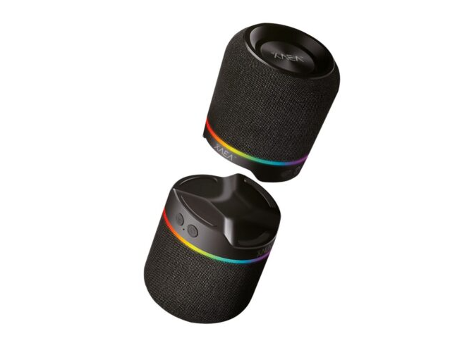 Un diseño 2 en 1 que se separa para usarse de forma individual o combinado, creando una experiencia sonora envolvente.