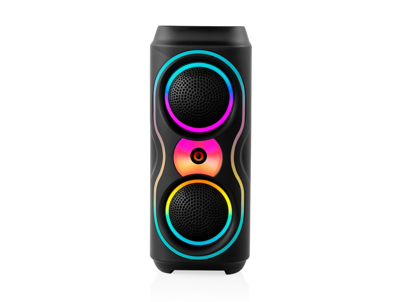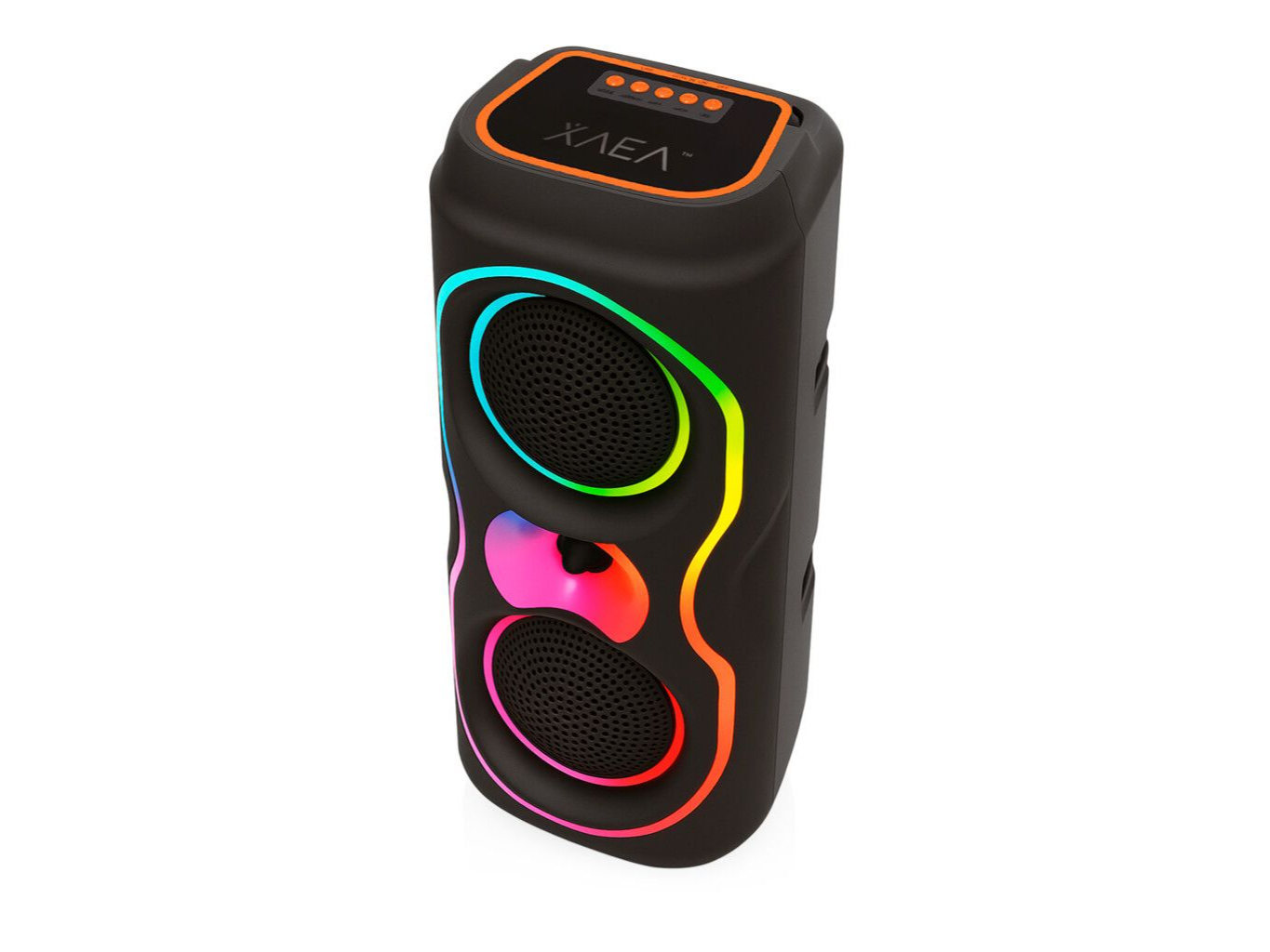 Parlante Bluetooth XAEA con sonido potente 10W (5W x2), luces LED RGB, función TWS, batería recargable y múltiples modos (Bluetooth, USB, TF, AUX). Ideal para llevar la música a cualquier lado con estilo y potencia.