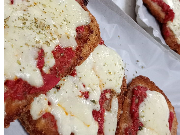 Rodajas de berenjena fresca, rebozadas y doradas hasta lograr un exterior crocante y un interior suave y lleno de sabor.