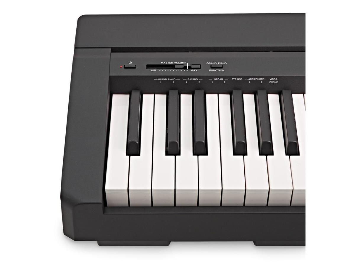 El P-45 cuenta con un teclado de martillos graduados estándar (GHS). El tacto y la sensibilidad del teclado cambia gradualmente según el registro, de modo que la sensación es de mayor peso cuando se tocan partes graves y de más ligereza cuando se tocan partes agudas. El teclado del piano también tiene un tacto natural, con teclas negras con acabado mate que transmiten una experiencia de auténtico piano acústico al tocar.