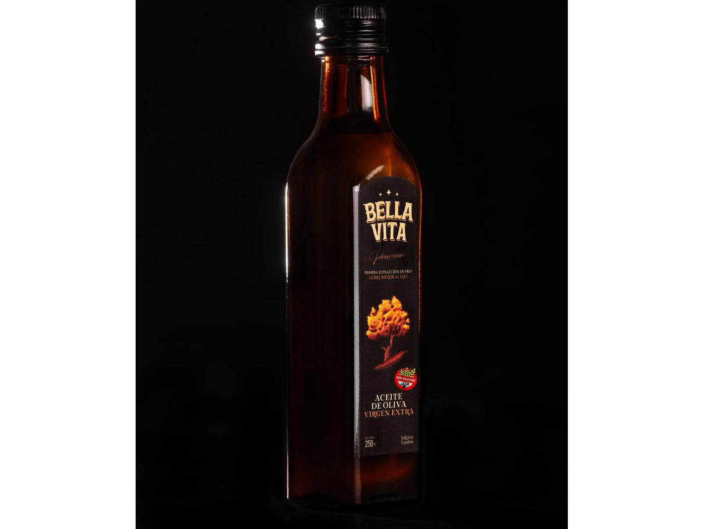 Aceite de oliva extra virgen, a la vista presenta un color amarillo ambar y en boca una intensidad media, equilibradamente frutado. Es de primera extraccion en frio y presenta una acidez menor al 0,8%.