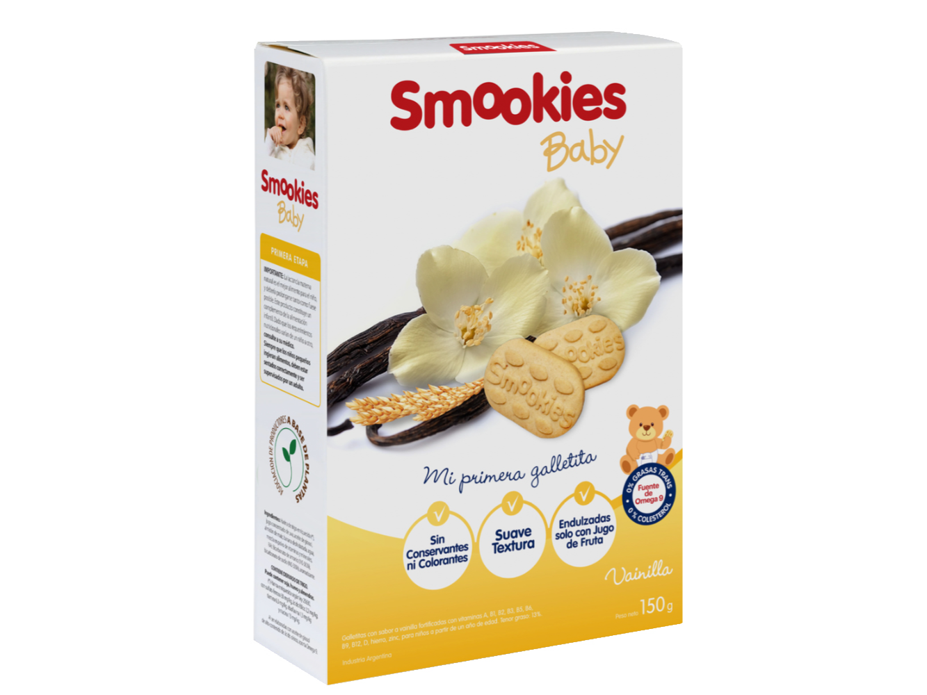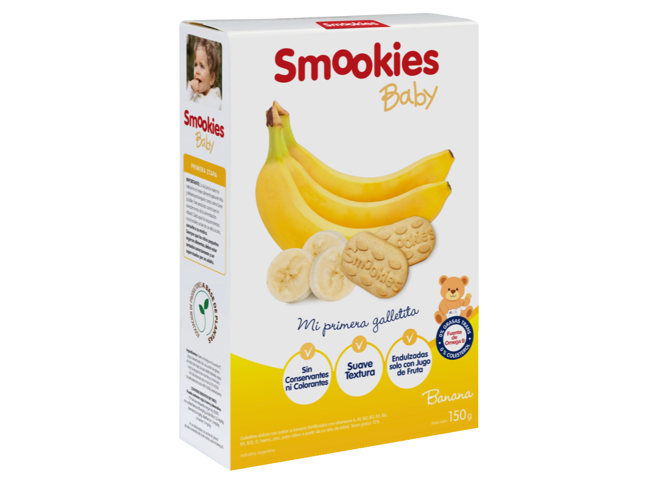 Galletitas Dulces Varios Sabores SMOOKIES BABY Compartir por WhatsApp Copiar enlace 0% Colesterol. 0% Grasas trans. Contiene gluten. Presentaciones Seleccioná las opciones que quieras.SABOR BANANA Caja de 150g 4 unidades en stock $5.600SABOR MANZANA Caja de 150g 5 unidades en stock $5.600SABOR VAINILLA Caja de 150g 2 unidades en stock $5.600SABOR PERA Caja de 150g 5 unidades en stock $5.600 Observaciones 0 / 150