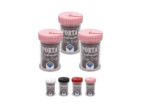Porta Condimentos Flip Top Compartir 2 unidades en stock Disponible tapa color: Gris-Rosa Porta Condimentos Flip Top Tapa de resguardo Material: Polipropileno$2.900 Observaciones 0 / 150