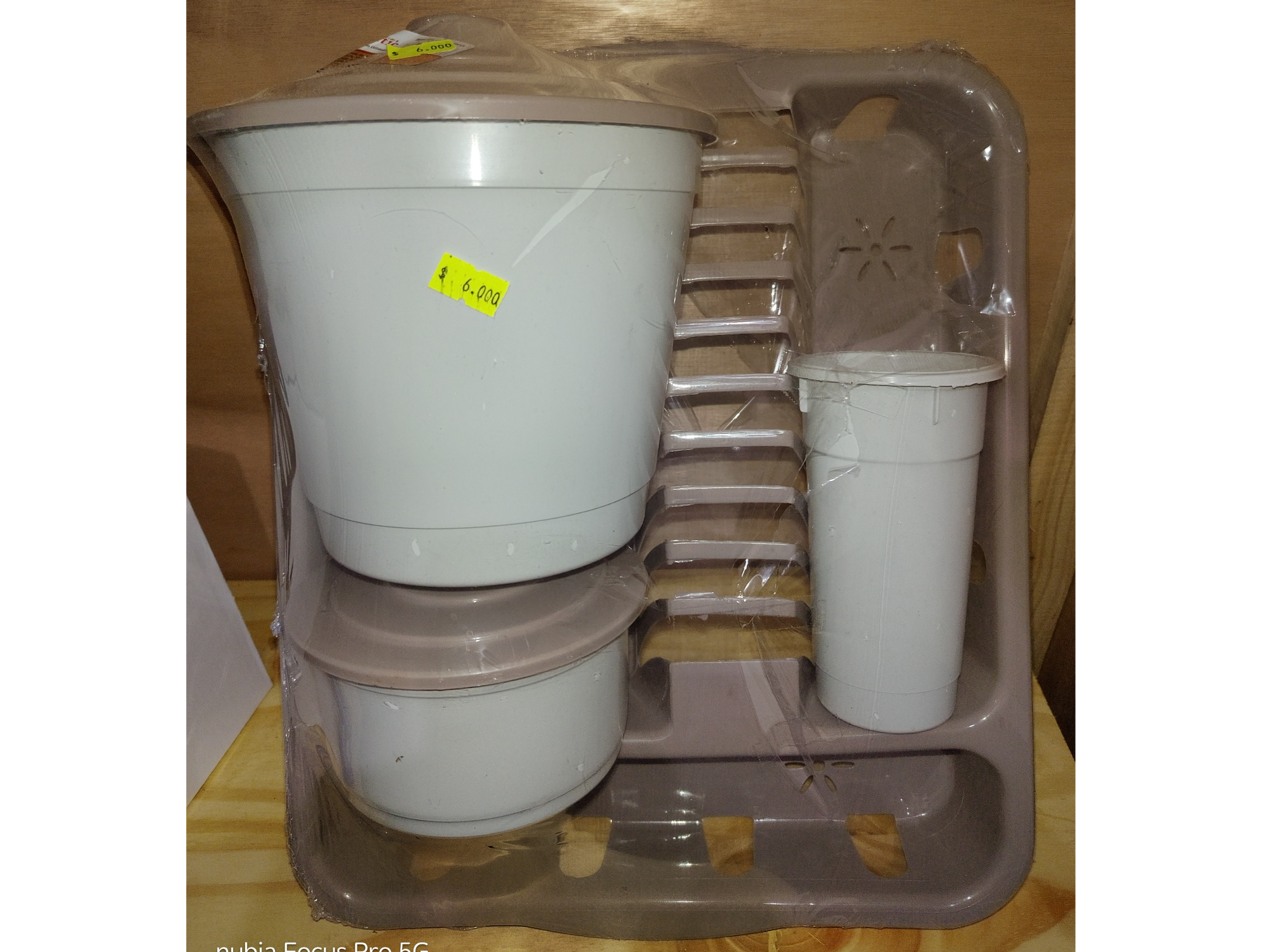 Kit Cocina con 4 PC Multiuso Compartir 2 unidades en stock 1 Escurridor de plato 3 recipientes multiuso Colores: Azul- Beige$5.900 Observaciones 0 / 150