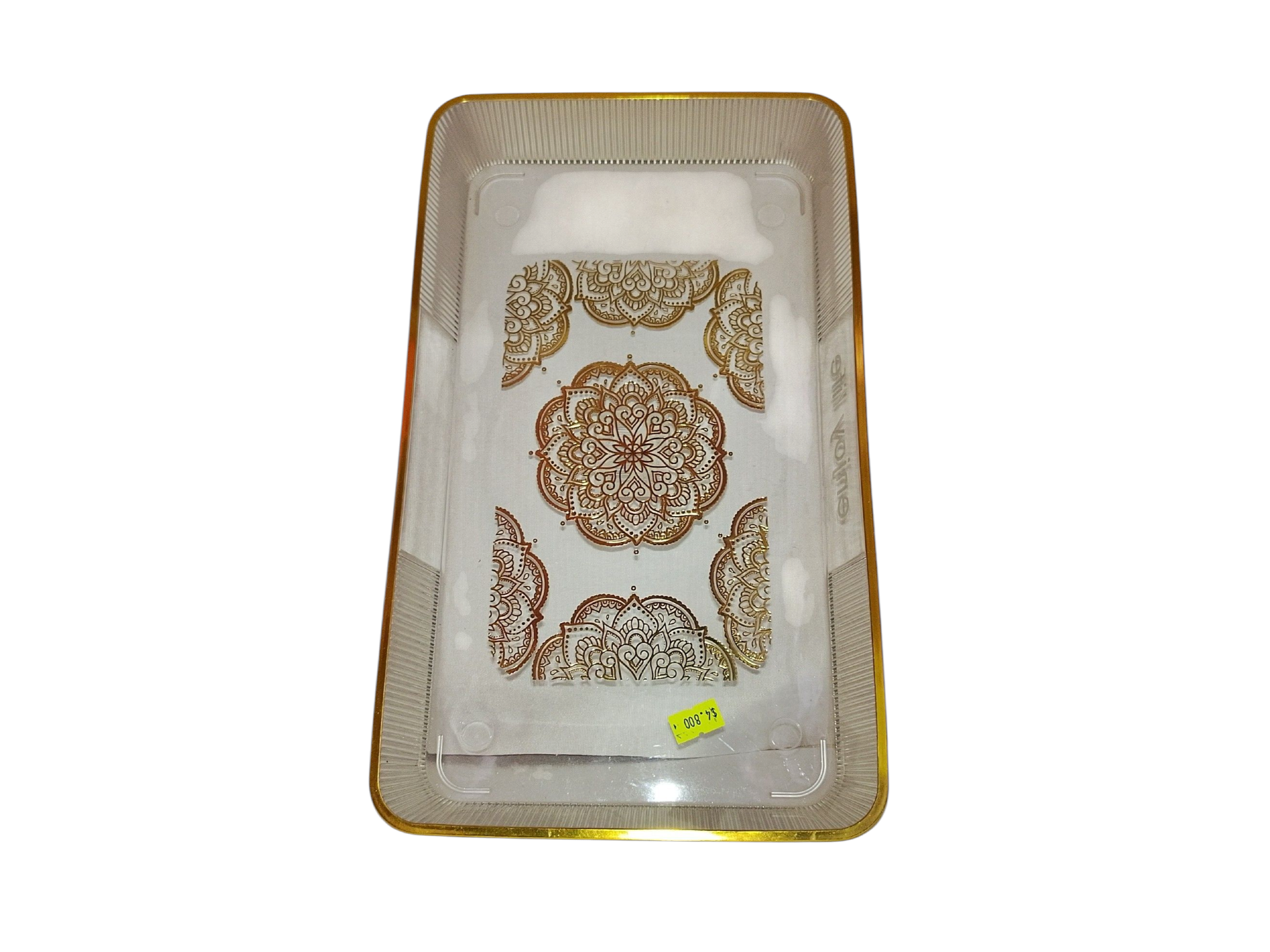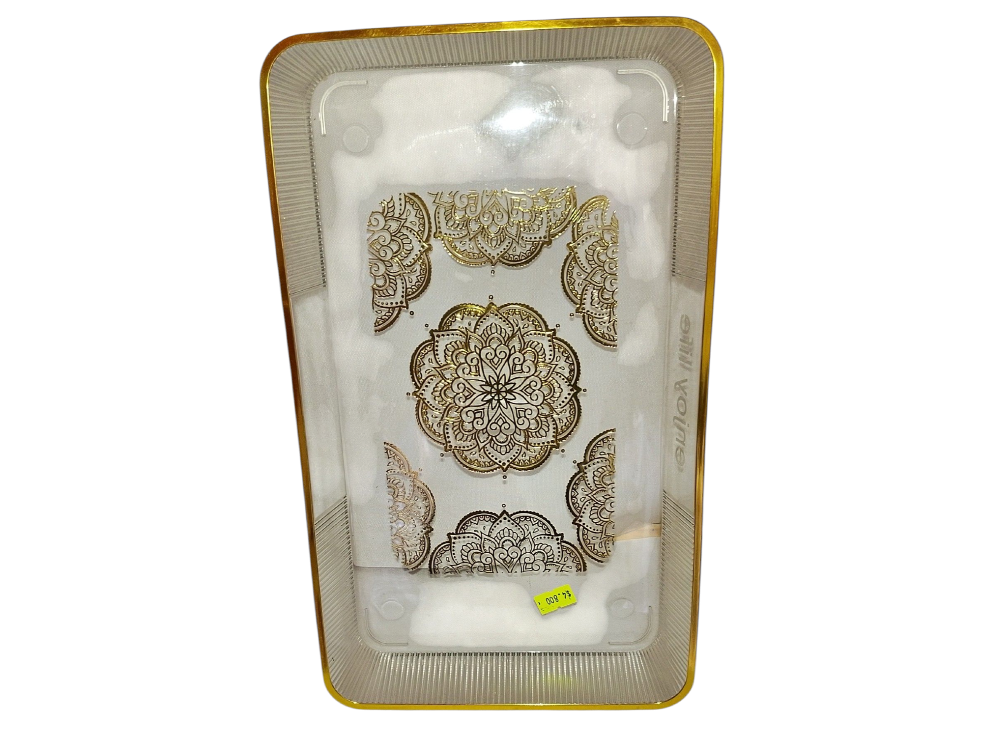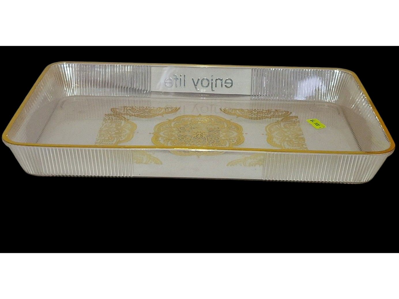 Bandeja Rectangular Diseño antiguo elegante Dorado Compartir Última unidad Bandeja Rectangular Diseño: Detalles en Dorados Material: Plástico A2H Destaca tu Sobre mesa con este producto!$4.800 Observaciones 0 / 150