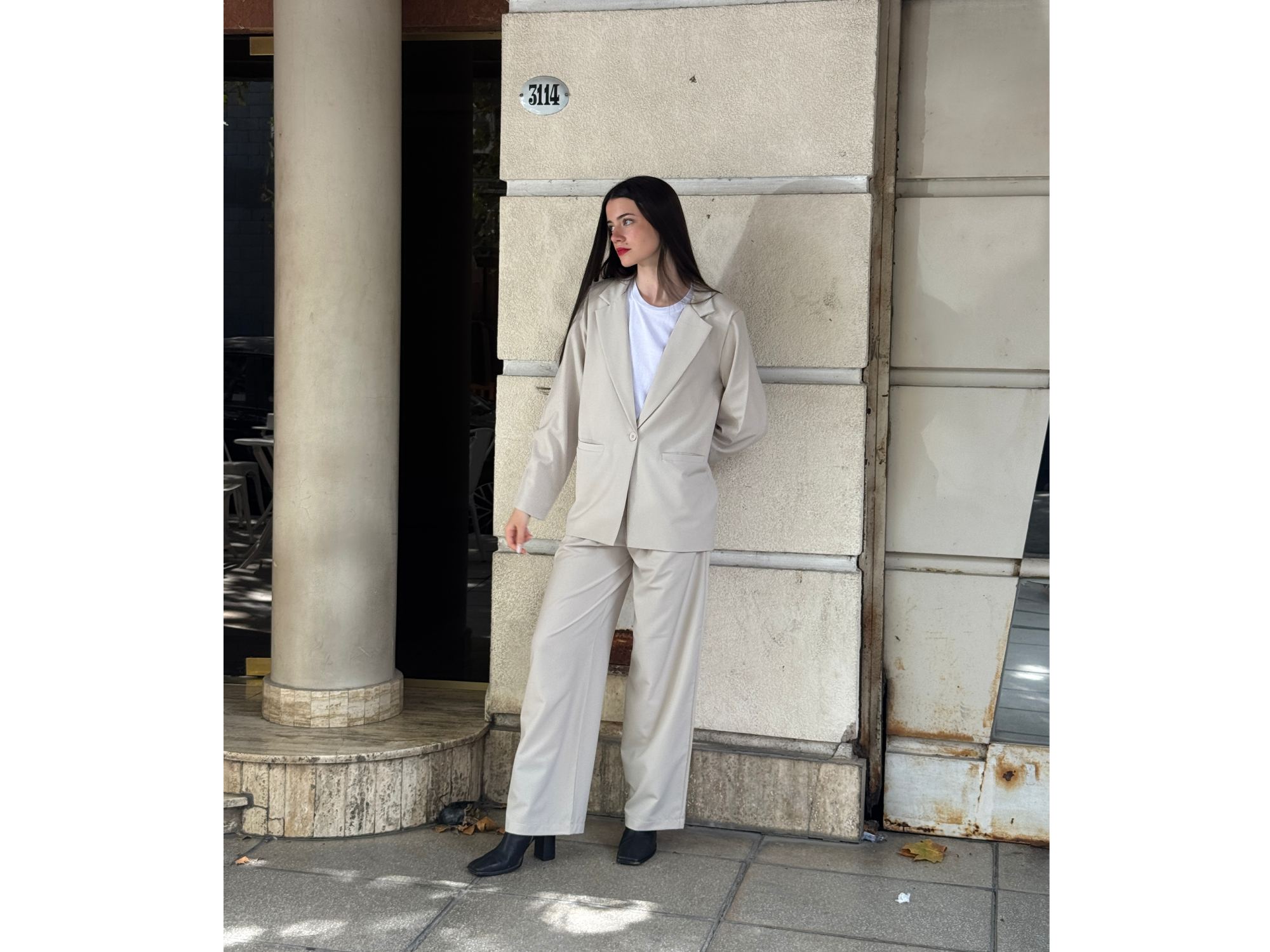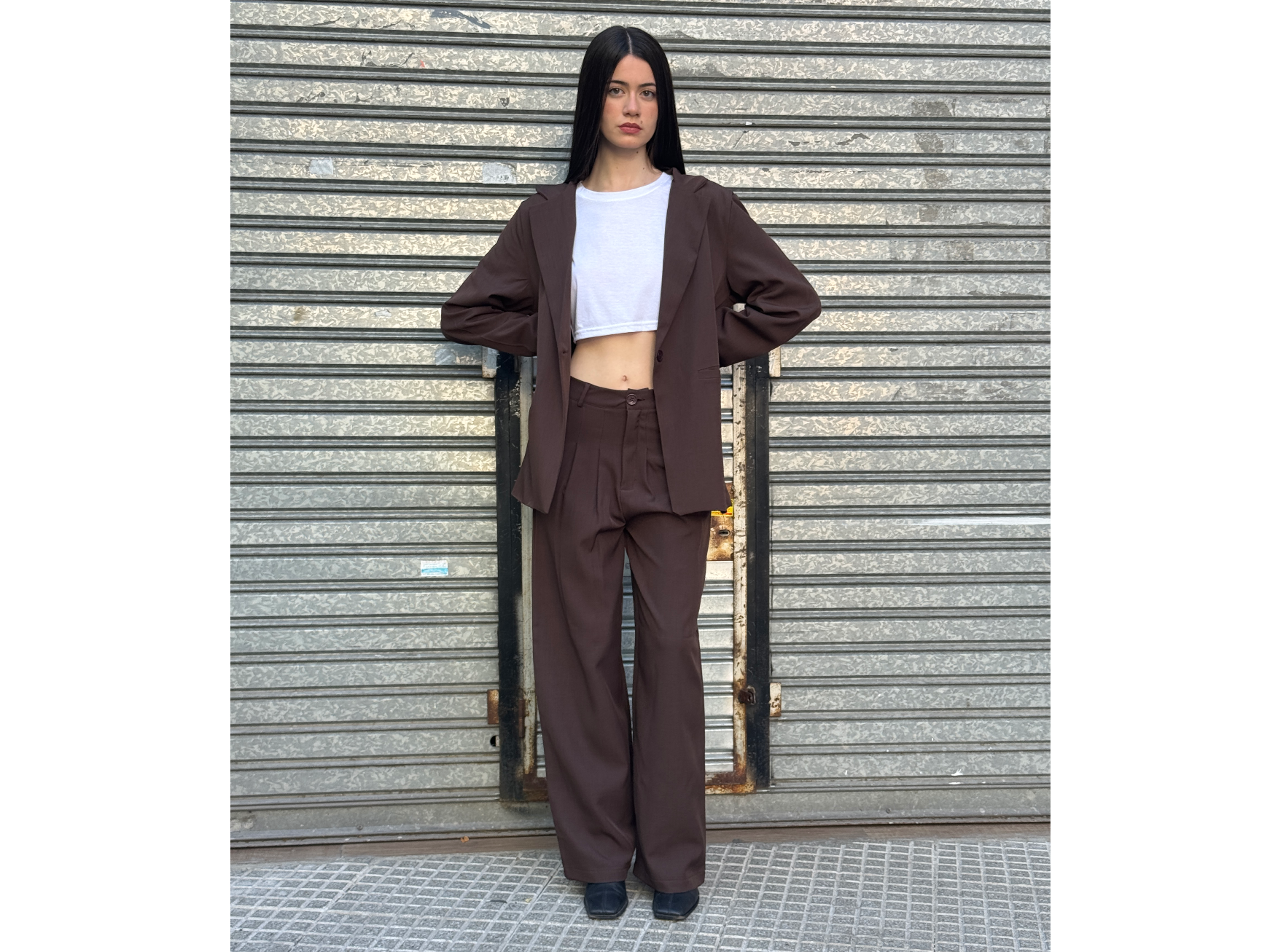 Set MADRID: blazer y pantalón confeccionados en tela sastrera de rayón premium.