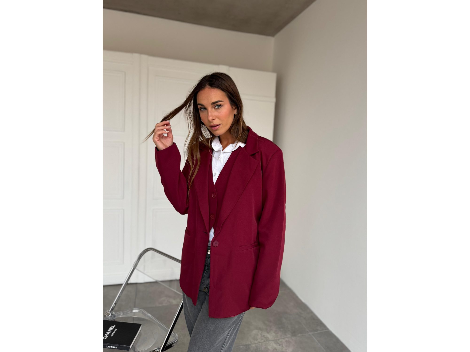 Blazer NEW YORK Compartir por WhatsApp Copiar enlace Blazer oversized confeccionado en tela sastrera sarga casimir premium. 1 botón . Forrado. S : Sisa 56 CM - Largo: 72 CM M: Sisa 57 CM - Largo :74 CM L : Sisa 58 CM - Largo: 75 CM Presentaciones Seleccioná las opciones que quieras.BORDO S$25.000BORDO M$25.000BORDO L Sin stock $25.000GRIS S$25.000GRIS M$25.000GRIS L$25.000NEGRO S$25.000NEGRO M$25.000NEGRO L Sin stock $25.000 Observaciones 0 / 150
