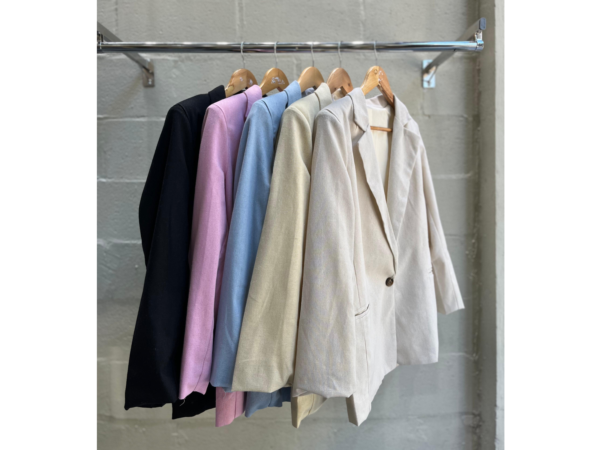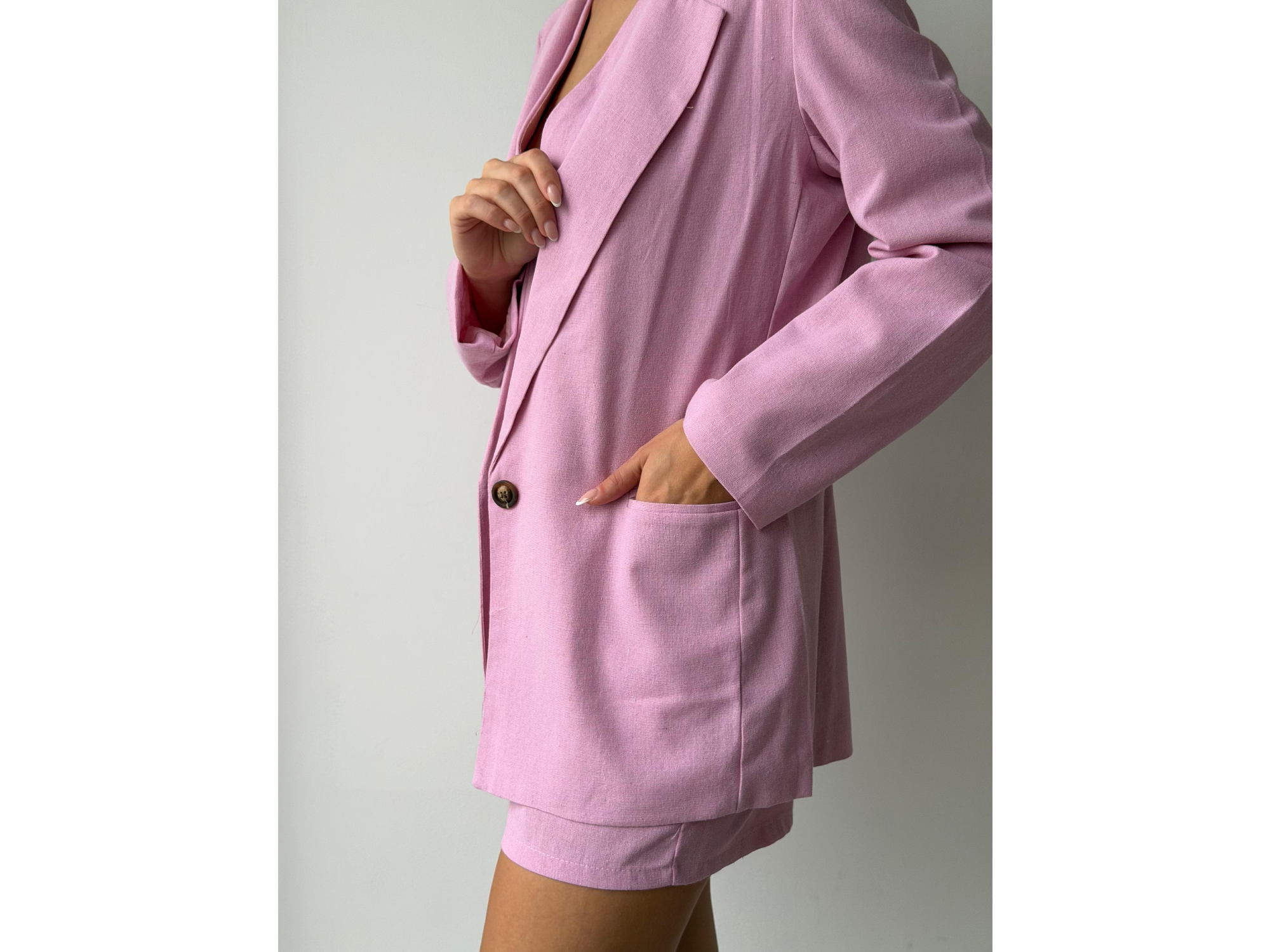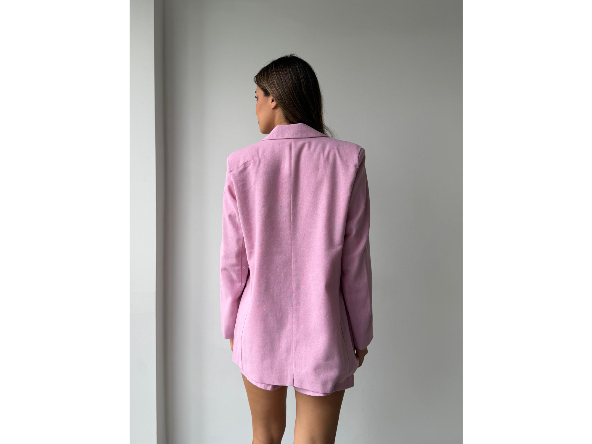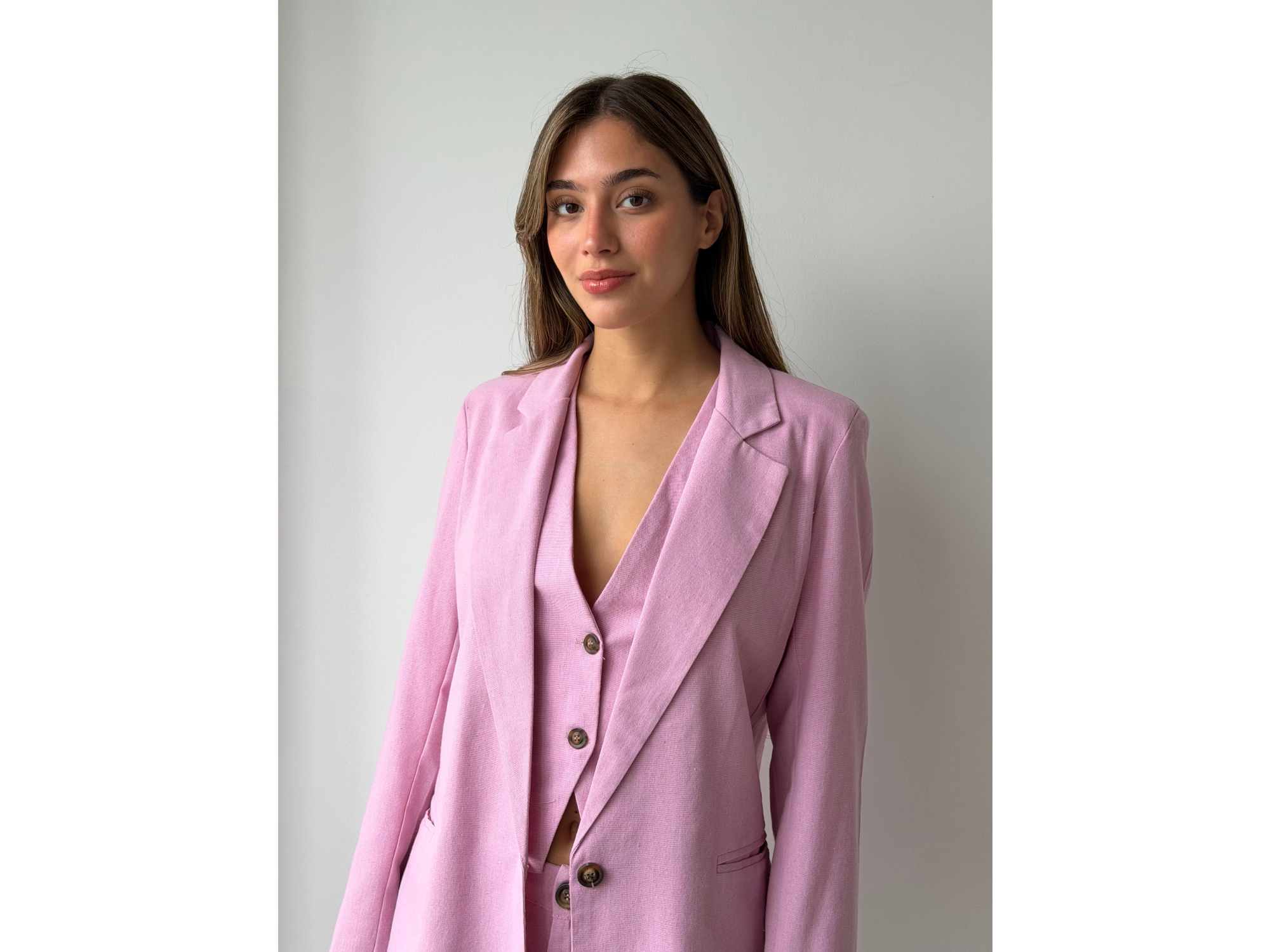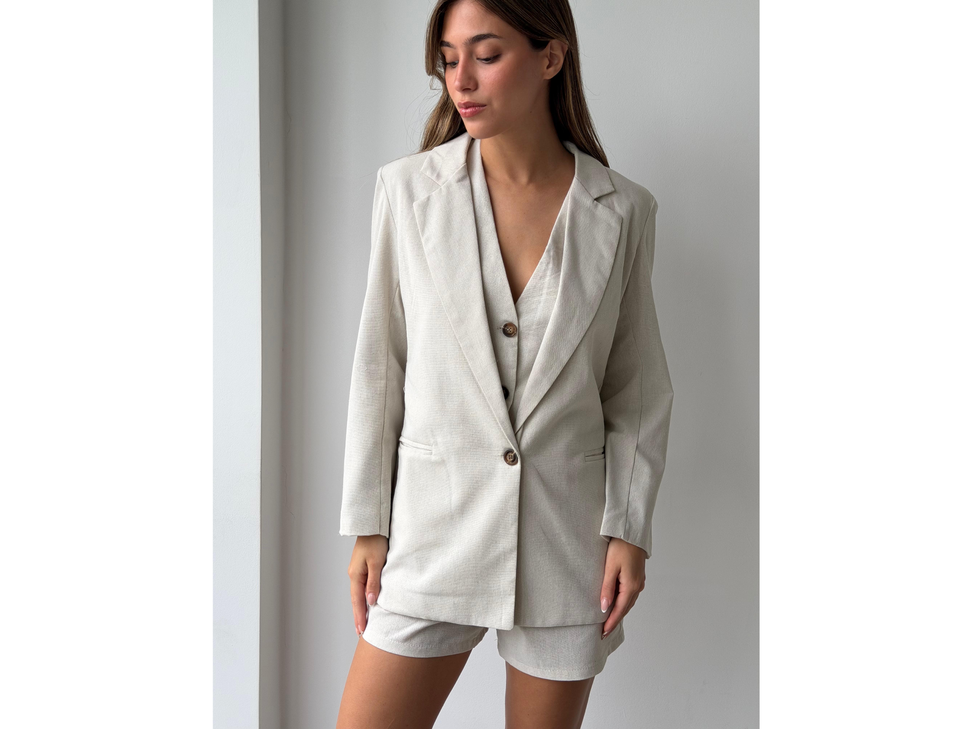 Blazer confeccionado en tela de lino sastrero. Un botón. Con hombreras .Forrado.