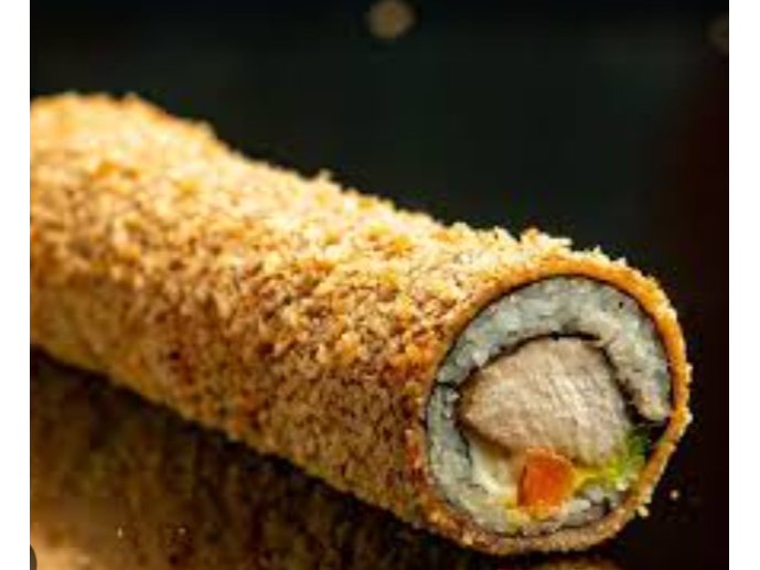 Handroll Futumaki relleno de Pollo + Queso Crema envuelto en Nori Tempura. (incluye salsa de soya)