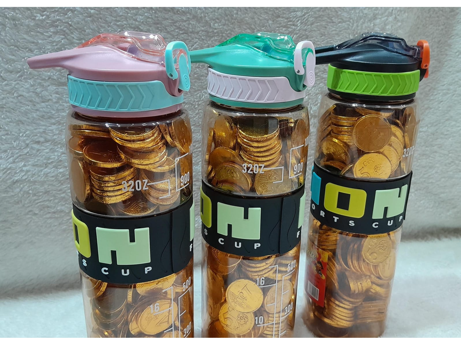 BOTELLA AGUA CON CHOCOLATE 12X280 Compartir 2 unidades en stock Hermosa botella de agua con moneditas de chocolate, trae un total de 280 unidades de monedas. Ideal para regalo! Te enviamos que colores quedan disponibles una vez confirmada la compra. :)$19.800 Observaciones 0 / 150 Encontrá productos relacionados REGALERIA (2)