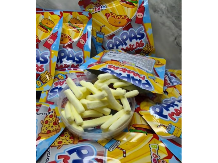 PAPAS FRITAS MAGICAS 12*20 Compartir 2 unidades en stock PAPAS FRITAS MAGICAS 12*20, gomitas con un toque acido sabor fresa, naranja y manzana.$12.375 Observaciones 0 / 150 Encontrá productos relacionados GOMITA BLANDA (13)