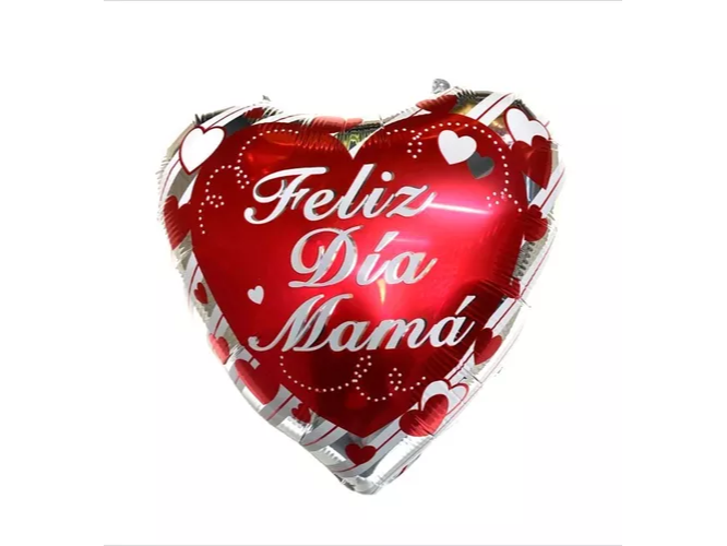 GLOBO MET 18" CORAZON FELIZ DIA MAMA RAYAS PLATA