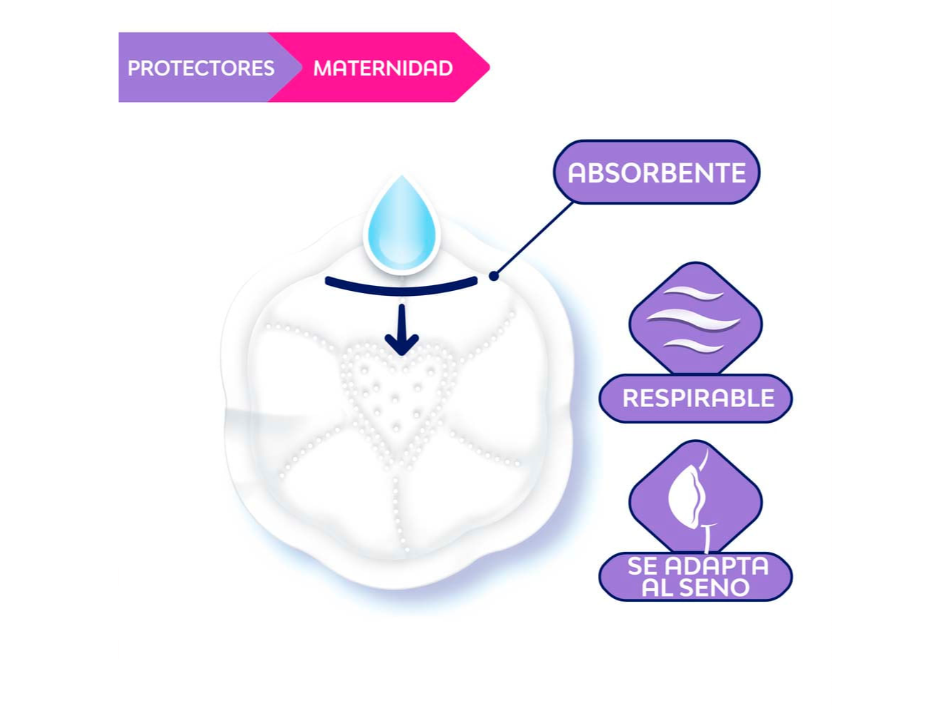 • Los Protectores de Lactancia Nosotras son súper absorbentes con centro acolchonado para proteger tu piel sensible.