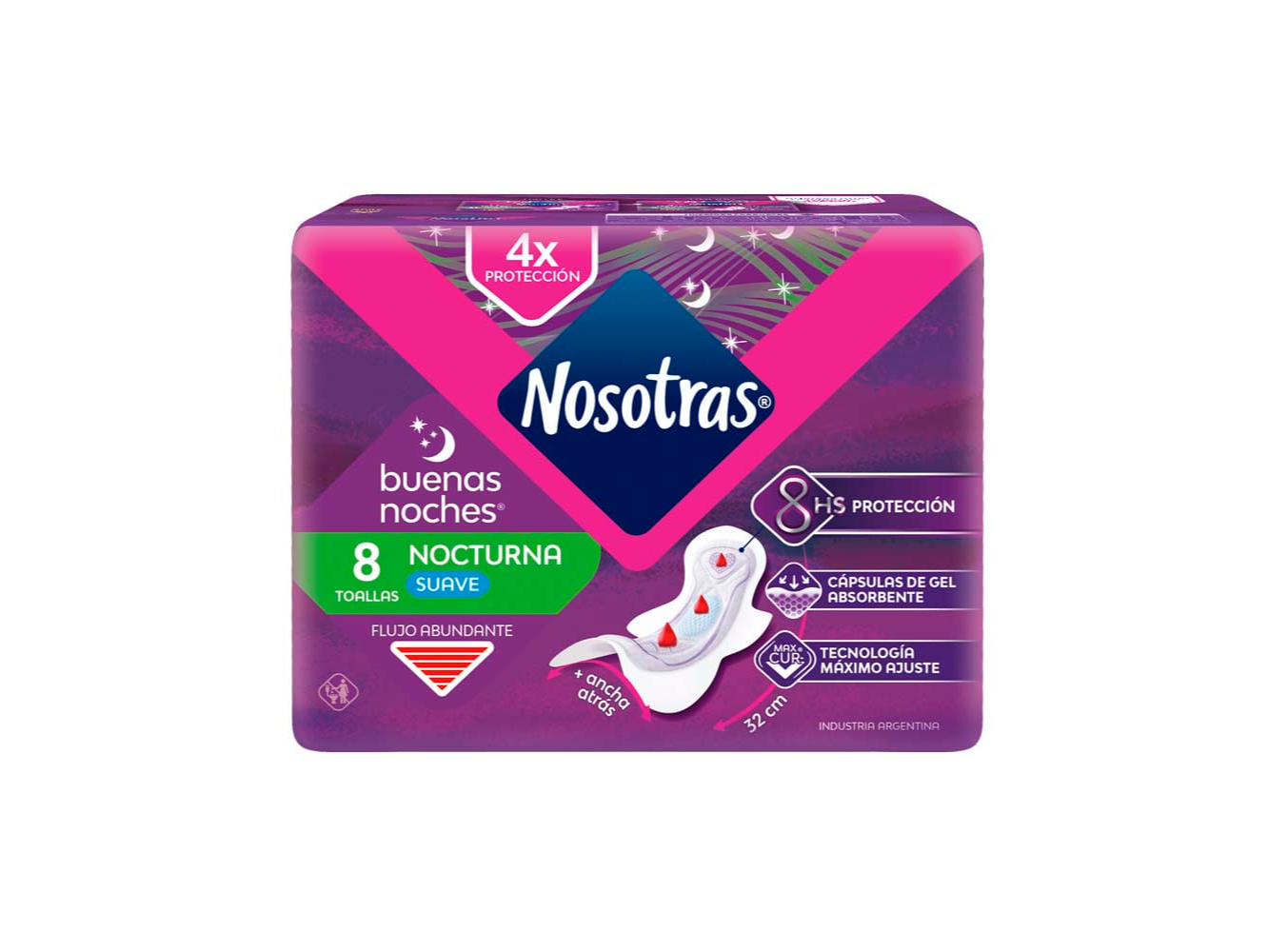 TOALLAS NOSOTRAS BS NOCHES TELA X8Toalla Nosotras Natural Buenas Noches x 8un$3.616 Observaciones 0 / 150