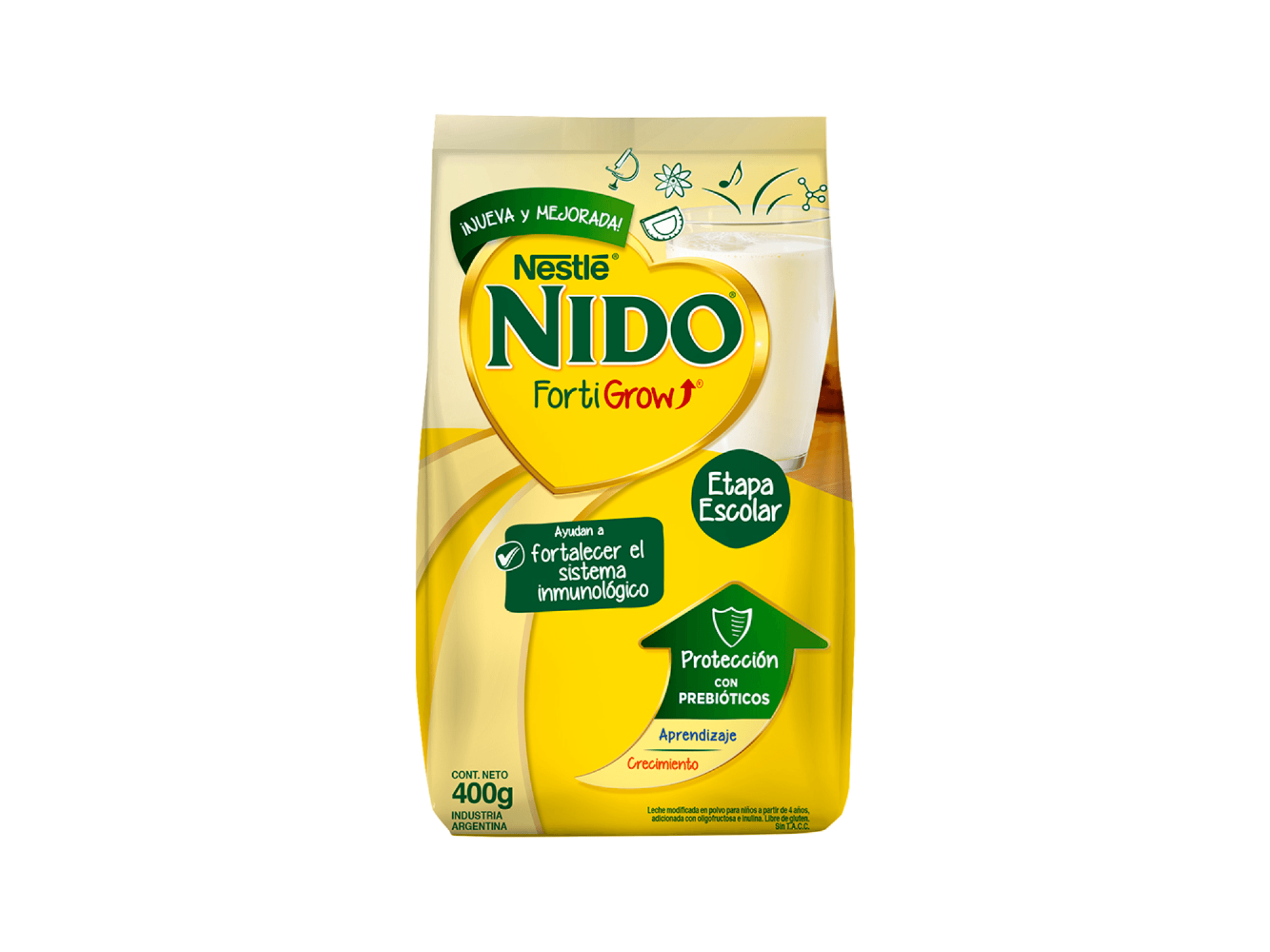 El inicio de la etapa escolar es desafiante. NIDO FortiGrow esta especialmente desarrollada para las necesidades para las necesidades de los chicos en edad escolar. Es una combinación única de leche, prebióticos naturales y nutrientes esenciales para mantener su protección, acompañar su aprendizaje y promover su crecimiento.