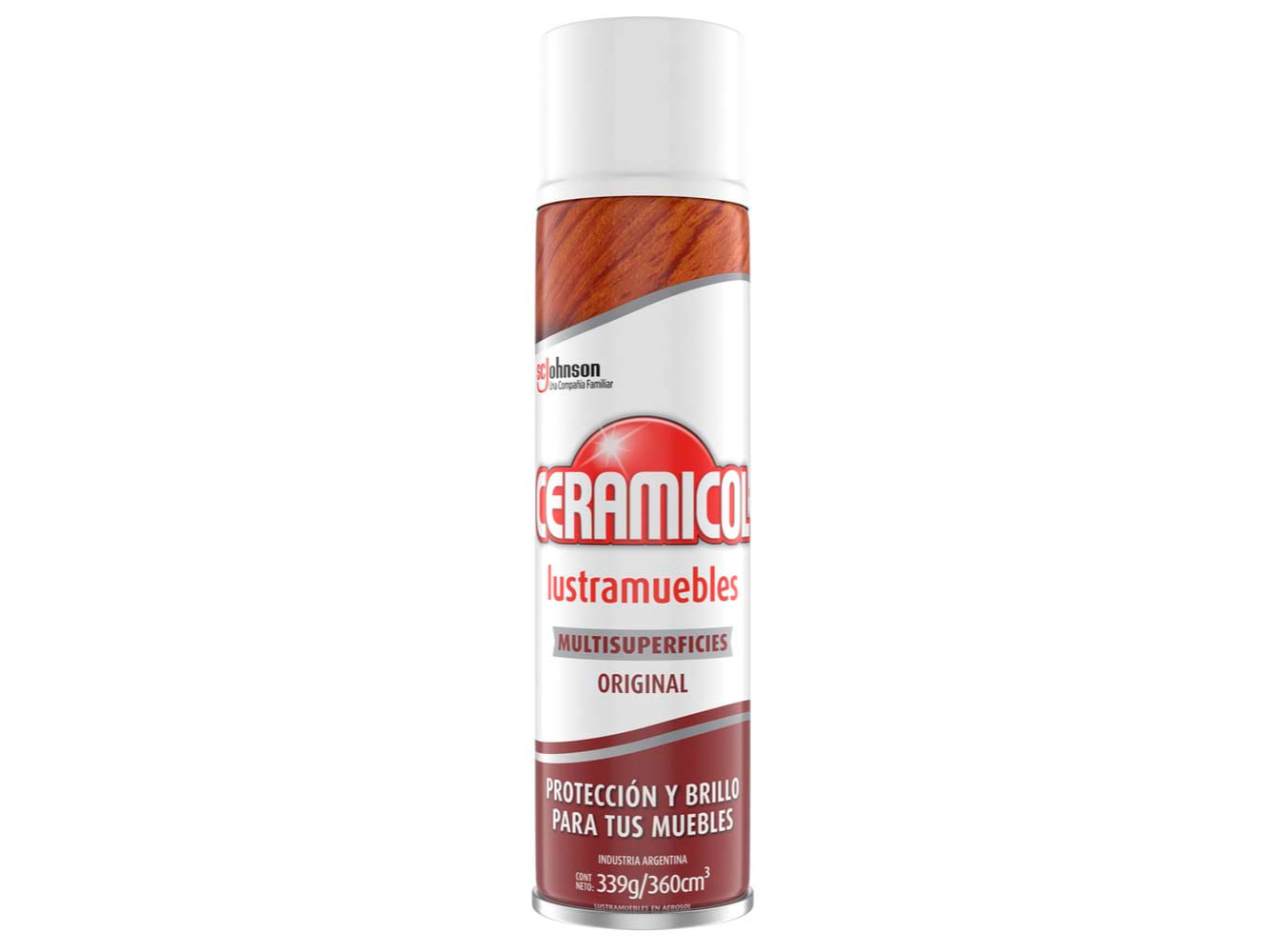 Lustramuebles Ceramicol Aerosol Original es la solución ideal para el cuidado de tus muebles. Su práctica presentación en aerosol facilita la aplicación y distribución del producto, ahorrándote tiempo y esfuerzo. Su fórmula, con su caracteristico aroma Original, no solo limpia profundamente, sino que también da brillo y protege las superficies de tu hogar, cerámico, granito, madera, muebles, fórmica, plástico, dejándolas como nuevas. Ceramicol Aerosol Original es perfecto para aplicar sobre distintas superficies, dejando un brillo intenso y duradero. Además, su exclusiva fórmula ayuda a repeler el polvo, manteniendo tus muebles limpios por más tiempo. <br/> <br/> <br/> <br/> Características Clave:<br/> <br/> - Brinda brillo y protección.<br/> <br/> - Ideal para múltiples superficies.<br/> <br/> - Fragancia Original.<br/> <br/> - Formato en aerosol.<br/> <br/> <br/> <br/> Modo de Uso:<br/> <br/> - Agitar bien el envase antes de usar.<br/> <br/> - Rociar el producto sobre la superficie a tratar a una distancia de 20 cm.<br/> <br/> - Limpiar con un paño limpio y seco.