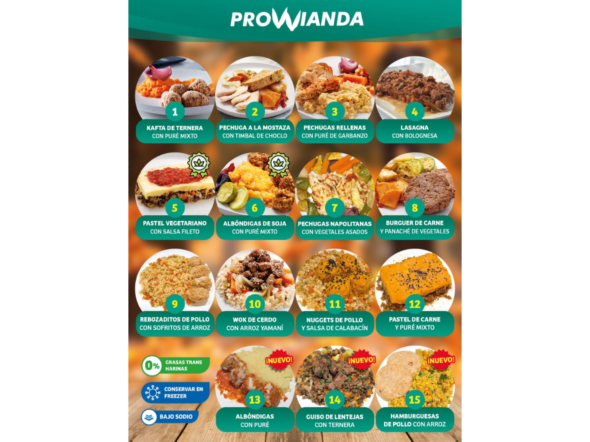 Provviandas congeladas 450 gr Compartir Presentaciones Seleccioná una opción.Albondigas con pure de papa$7.000Burgue life carne con panache de vegetales$7.000Lasagna con bolognesa$7.000Pechugas napolitanas con panache de vegetales$7.000Rebozaditos de pollo con humus de arvejas$7.000 Observaciones 0 / 150
