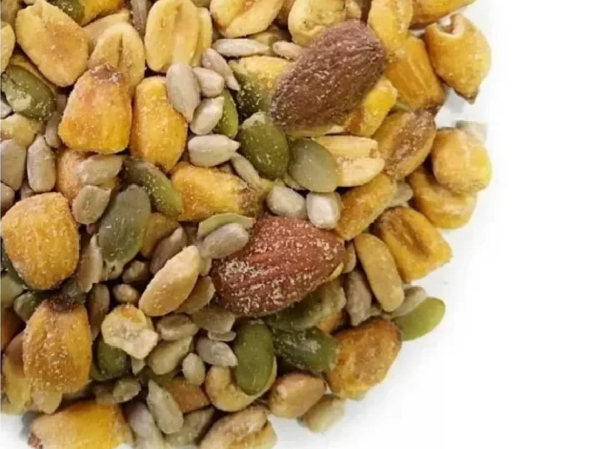 Composición: Esta mezcla puede incluir diferentes tipos de frutos secos como maní, almendras, pistachos, nueces, maiz frito, castañas de caju,combinados con semillas como las de girasol y las de zapallo.