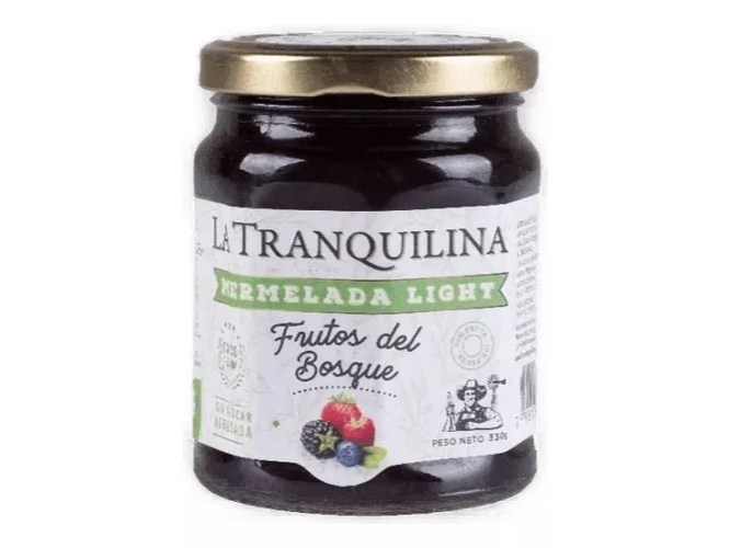 Mermelada dietética , sin azúcar agregada , baja en calorías , libre de gluten .