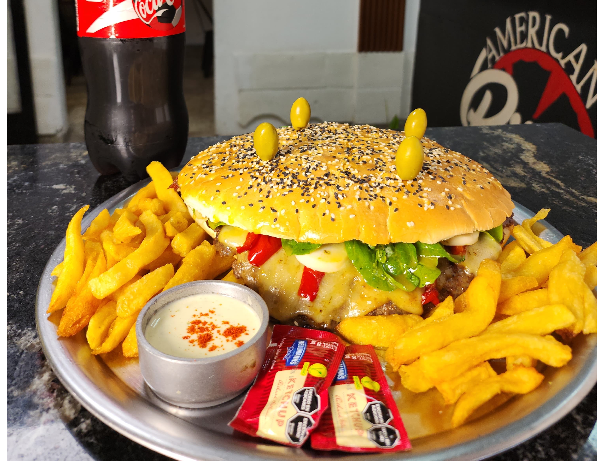 BURGER XXL EXPRESS Compartir por WhatsApp Copiar enlace Medallón XXL, queso mozzarella, huevo duro, morrones asados, rúcula, mostaza con miel, mayo americana y el toque de la casa. Sale con papas y potes de mayo de regalo 🍔🍟🤤♥️$19.900 Observaciones 0 / 150