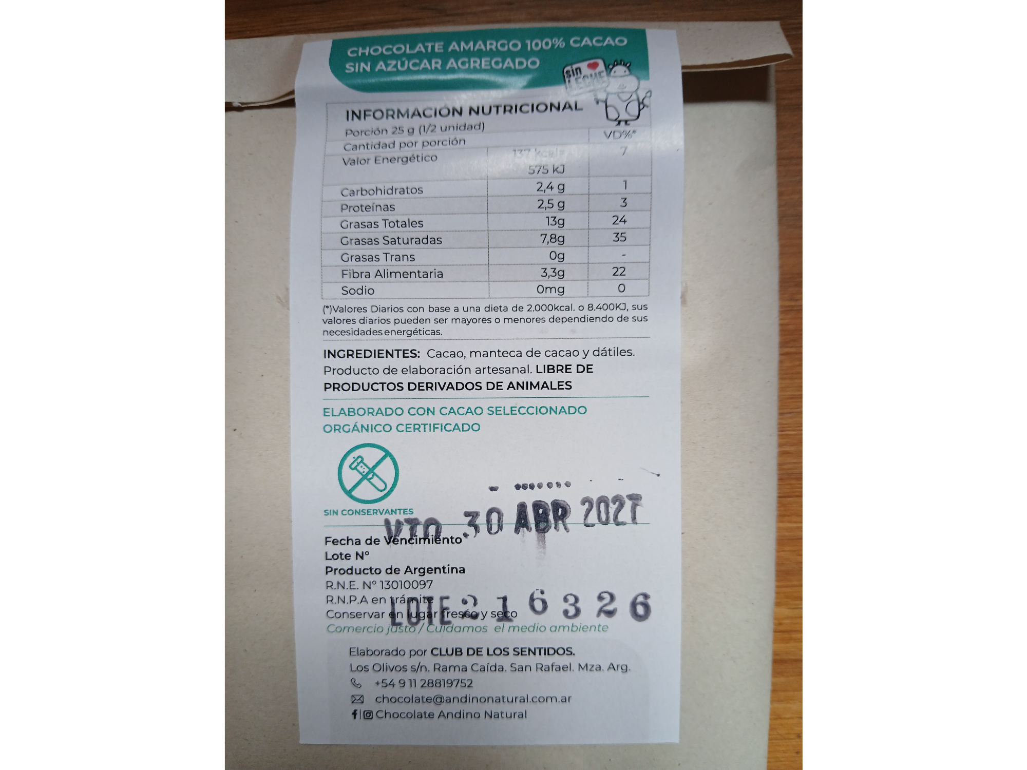 Chocolate 100% Cacao con Dátiles Compartir por WhatsApp Copiar enlace Tableta x 50 gr. Chocolate orgánico apto Keto, APLV, Vegano, libre de Gluten y Lactosa.$6.600 Observaciones 0 / 150 Encontrá productos relacionados SIN TACC (72) VEGANO (28) ORGANICO (26) NOVEDADES (18)