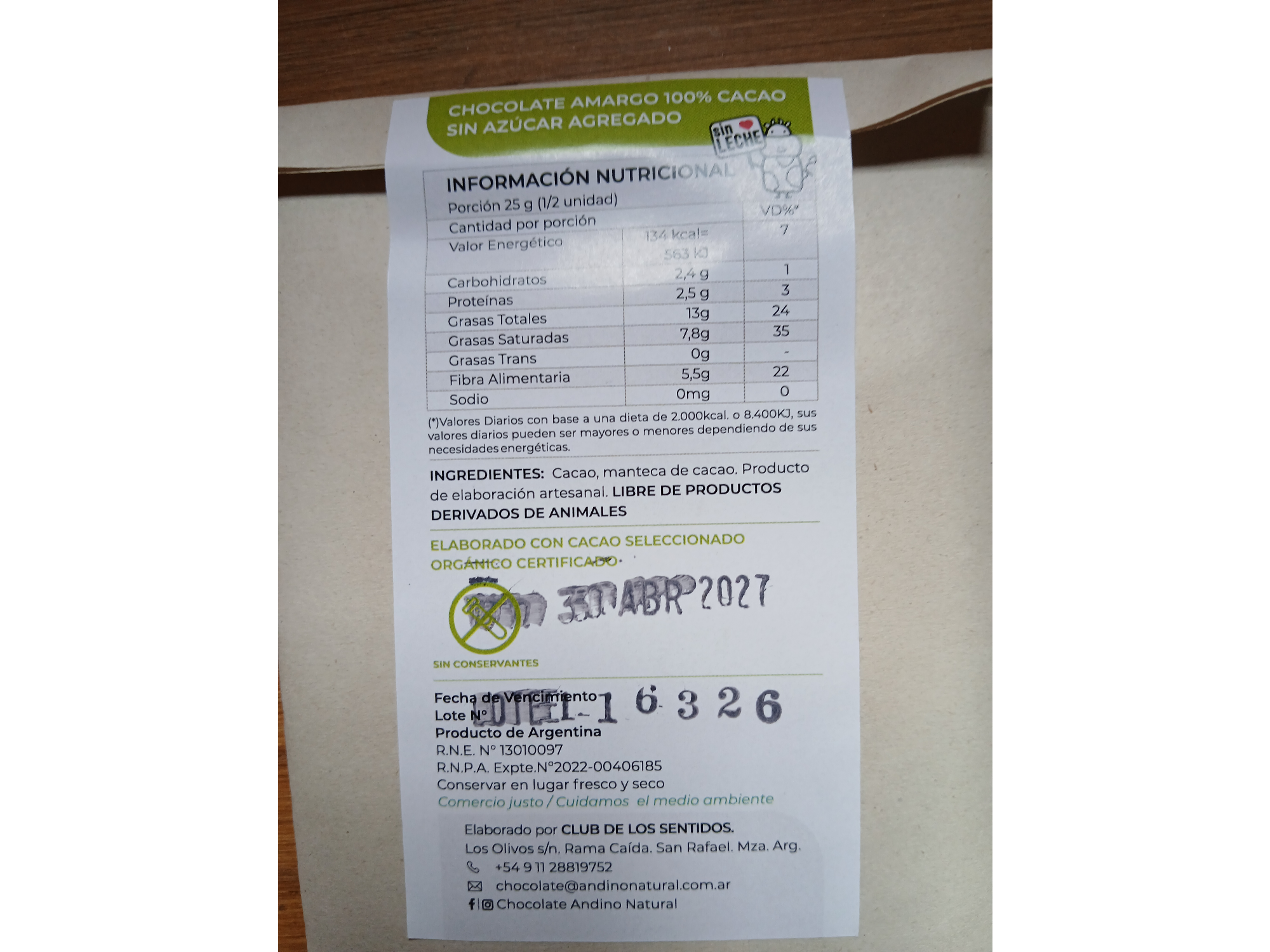 Chocolate 100% Cacao Compartir por WhatsApp Copiar enlace Tableta x 50 gr. Chocolate orgánico apto Keto, APLV, Vegano, libre de Gluten y Lactosa$6.600 Observaciones 0 / 150 Encontrá productos relacionados SIN TACC (73) VEGANO (28) ORGANICO (26) NOVEDADES (19)