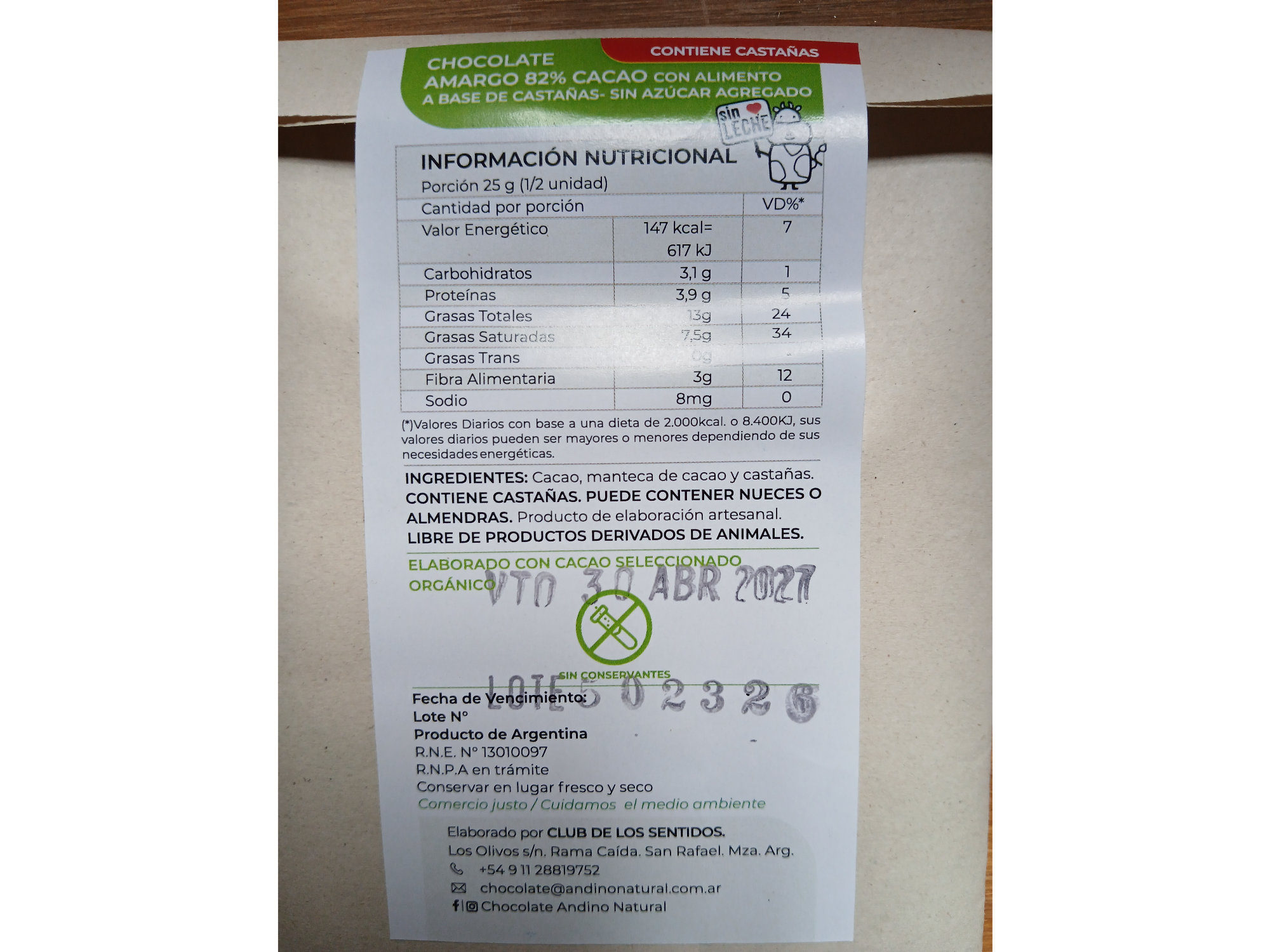 Chocolate 82% Cacao con Castañas Compartir por WhatsApp Copiar enlace Tableta x 50 gr. Chocolate orgánico apto Keto, APLV, Vegano, libre de Gluten y Lactosa.$6.600 Observaciones 0 / 150 Encontrá productos relacionados SIN TACC (72) VEGANO (28) ORGANICO (26) NOVEDADES (18)