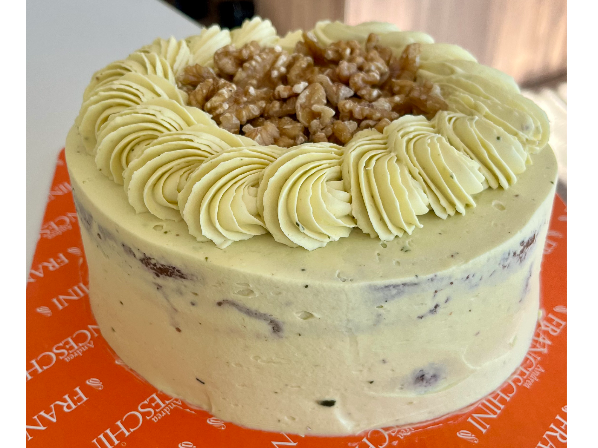 Torta Frutos Secos (pistacho) Compartir • Bizcochuelo de chocolate, con relleno de suave crema de pistacho y dulce de leche. • Porciones: 14/16 aprox.$27.500 Observaciones 0 / 150