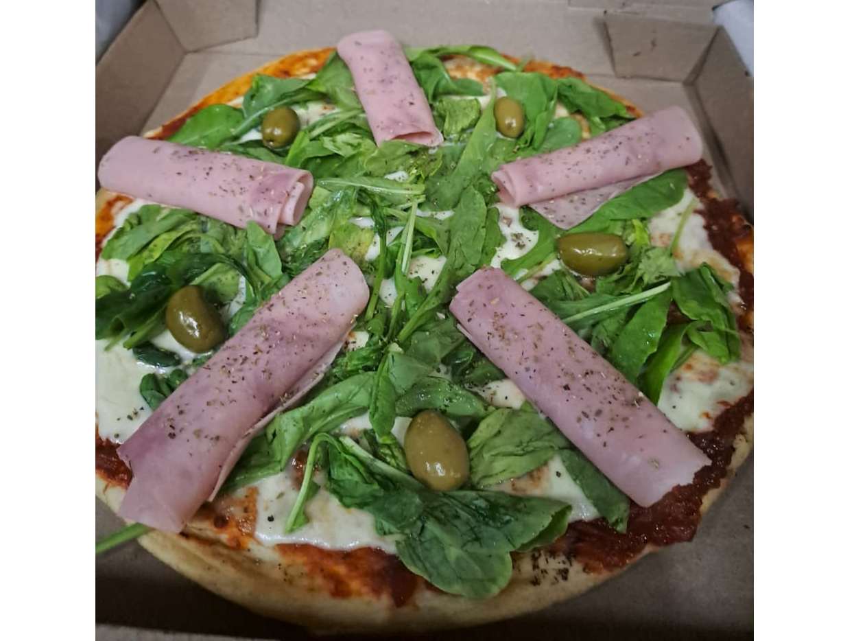 Rucula y Jamon Compartir por WhatsApp Copiar enlace Masa casera, salsa casera, queso, rucula, aceituna y jamon.$10.000$9.500 5% OFF Observaciones 0 / 150