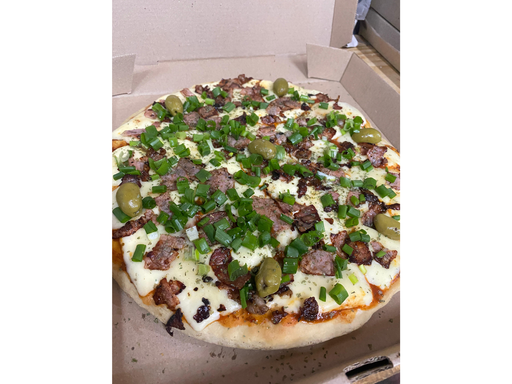 Panceta y verdeoMasa casera, salsa, abundante queso, panceta ahumada, cebolla de verdeo, aceituna$8.500 Personalizá tu selección Las siguientes opciones aplican para cada producto agregado. Agregado de papas Seleccioná las opciones que quieras.Acompañado de papas pizza$700 Observaciones 0 / 150 Encontrá productos relacionados PIZZAS (17)