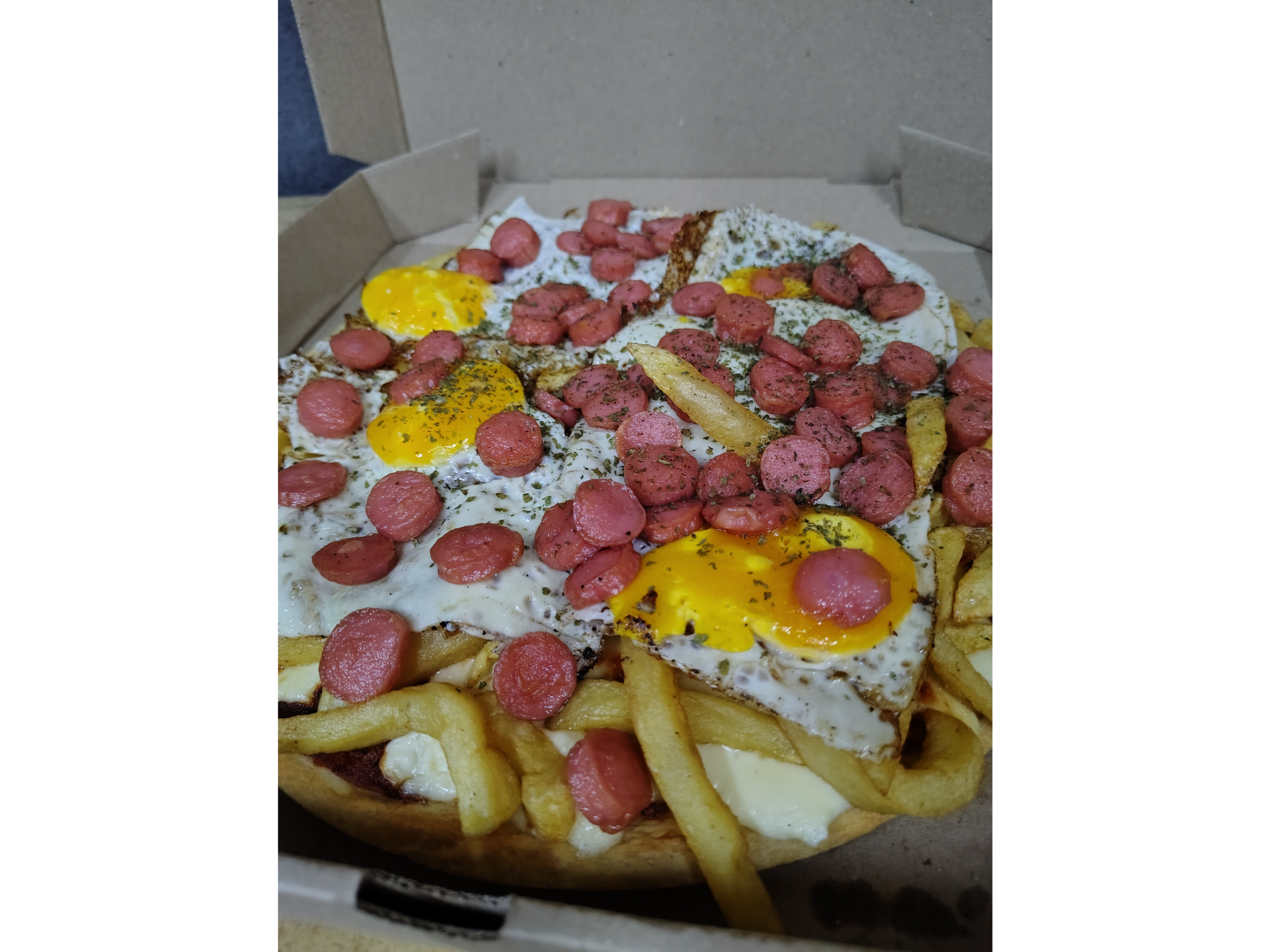 Salchipizza con huevo fritoMasa casera, salsa casera, queso cremoso, papas fritas, huevos fritos, salchicha 😎$10.000 Personalizá tu selección Las siguientes opciones aplican para cada producto agregado. Agregado de papas Seleccioná las opciones que quieras.Acompañado de papas pizza$700 Observaciones 0 / 150