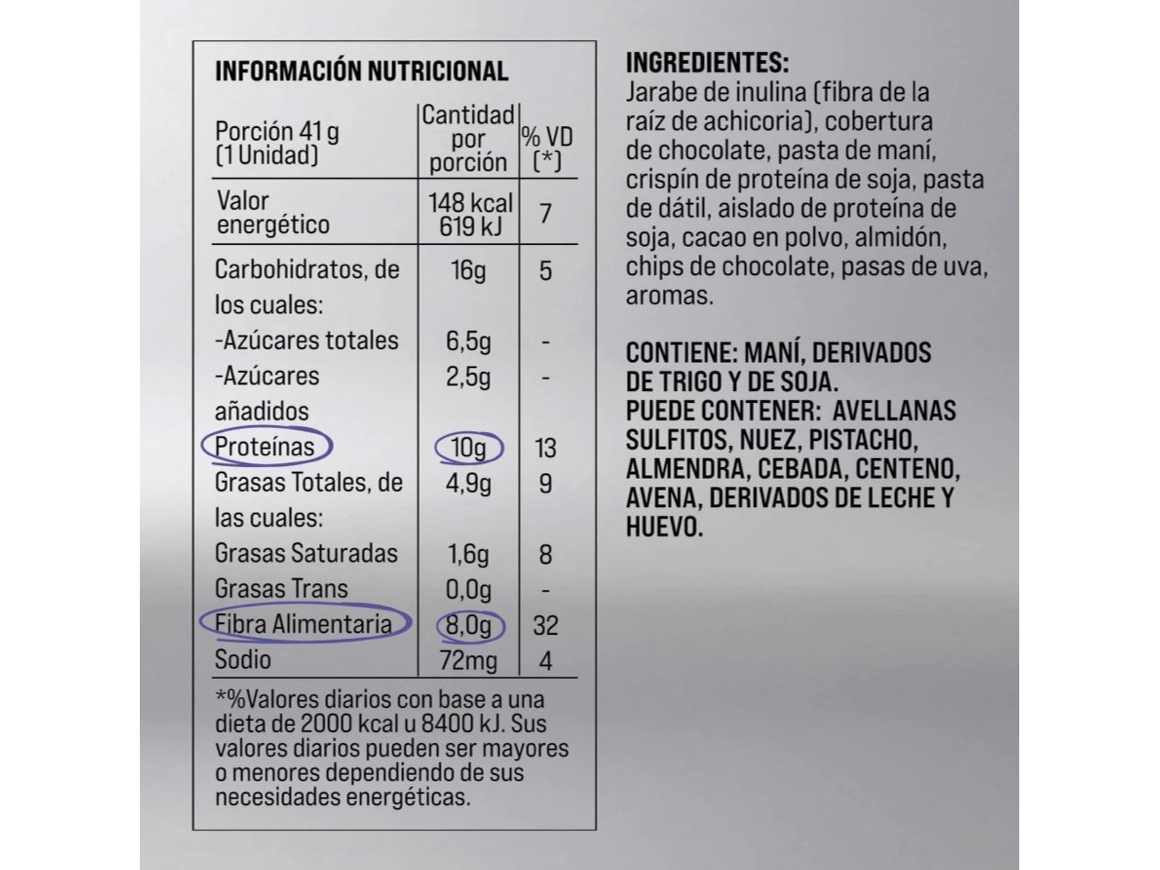 Barritas de chocolate con doble chocolate Compartir por WhatsApp Copiar enlace Barrita de chocolate con doble chocolate, saludables con un agregado de 10 gr de proteína y 8gr de fibra. Contiene bajo índice glucémico. Esto sumado a los agregados de fibra y proteína generan saciedad por mucho más tiempo. No tiene conservantes, colorantes, ni edulcorantes. Chocolate 100% real. Presentaciones Seleccioná las opciones que quieras.1u$2.800 Observaciones 0 / 150