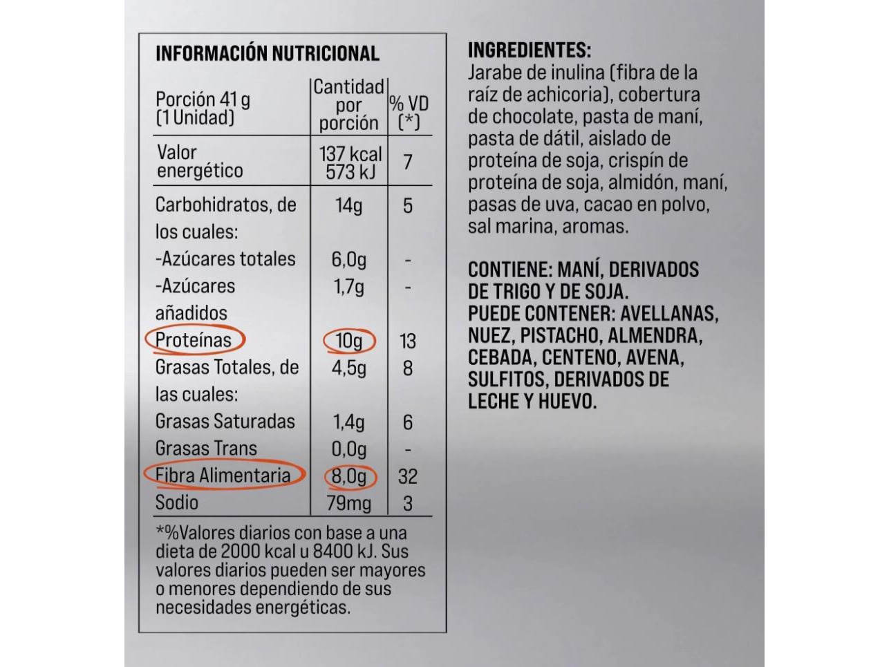 Barritas de chocolate con pasta de maní Compartir por WhatsApp Copiar enlace Barrita de chocolate con pasta de maní, saludables con un agregado de 10 gr de proteína y 8gr de fibra. Contiene bajo índice glucémico. Esto sumado a los agregados de fibra y proteína generan saciedad por mucho más tiempo. No tiene conservantes, colorantes, ni edulcorantes. Chocolate 100% real. Presentaciones Seleccioná las opciones que quieras.1u$2.800 Observaciones 0 / 150