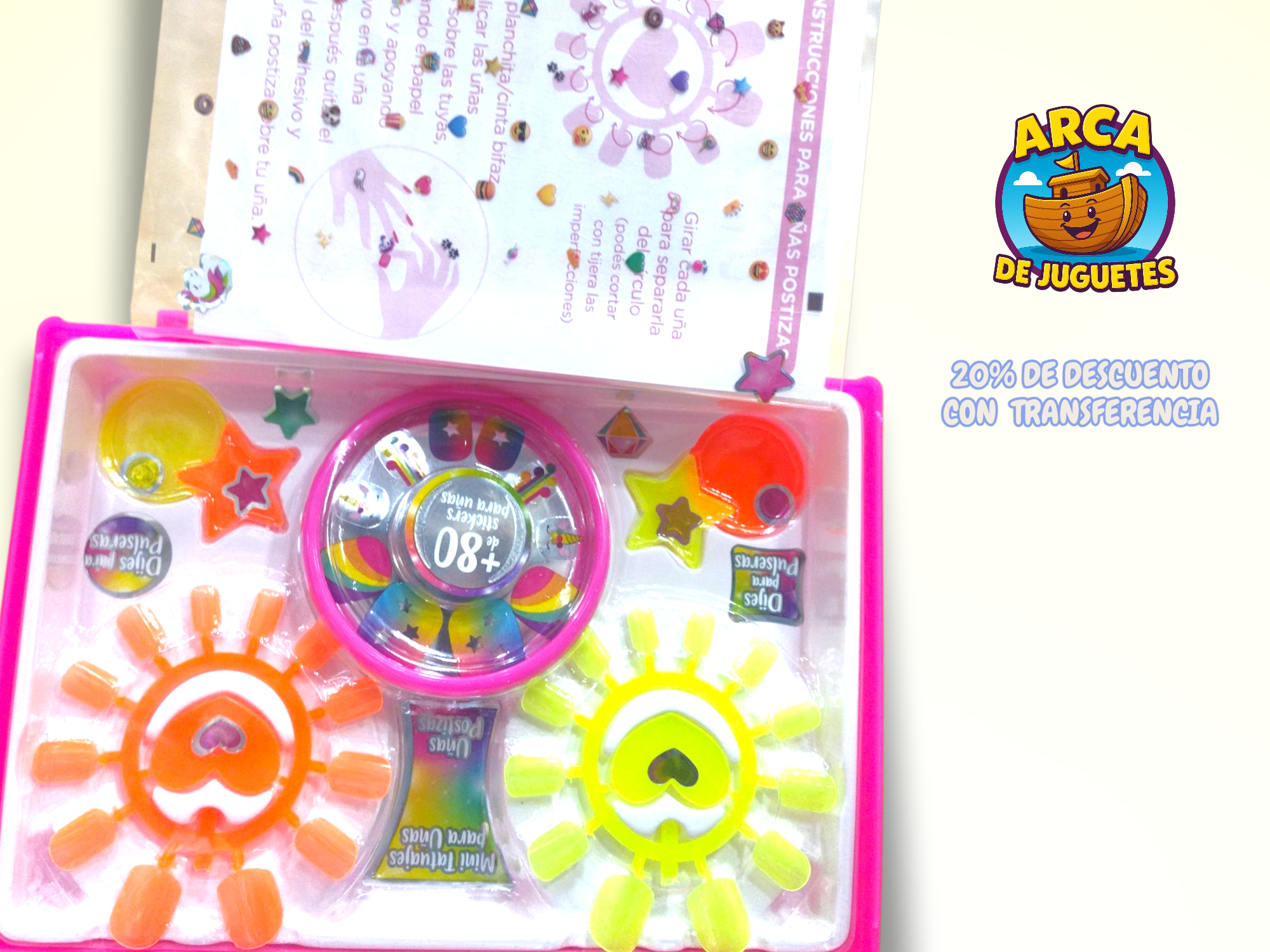 Incluye todo lo necesario para decorar y pintar las uñas con estilo y color.