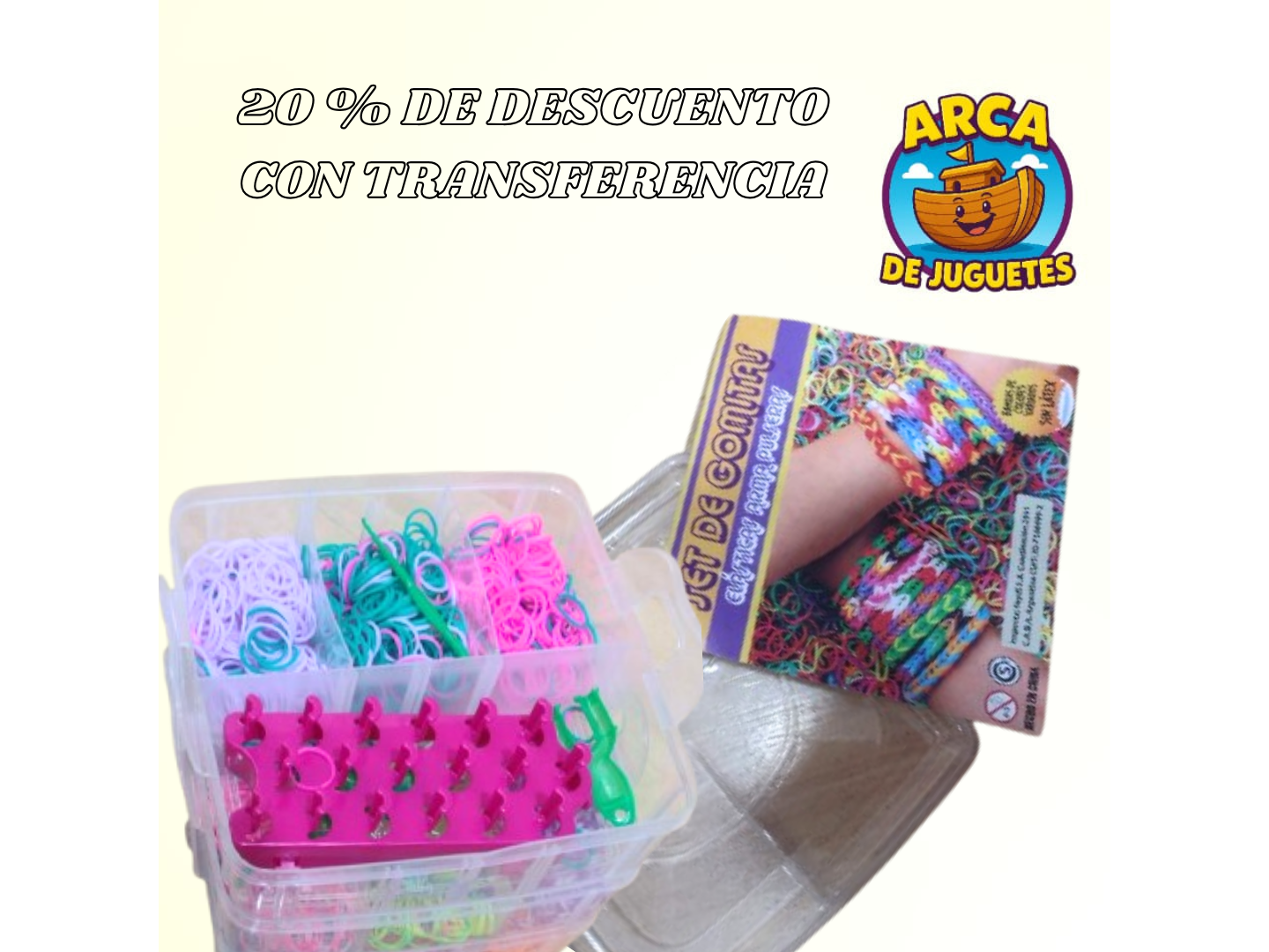 Con este cofre de banditas de colores para armar pulseras los chicos podrán crear sus propios diseños únicos y llenos de estilo. El set incluye una gran variedad de banditas elásticas de colores vibrantes que permiten hacer pulseras, collares, anillos y mucho más.