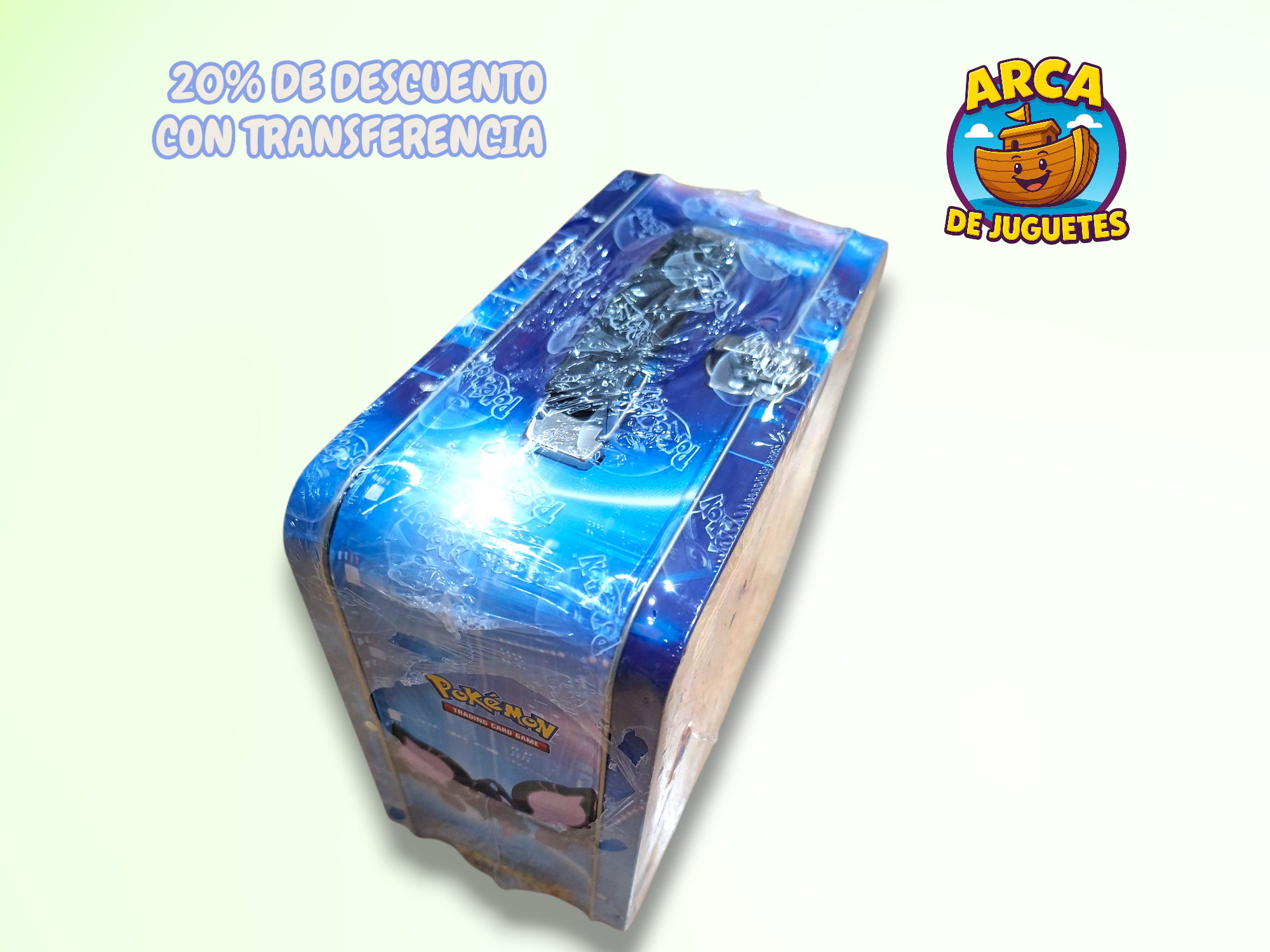 Cada lata metálica coleccionable incluye una selección de cartas Pokémon originales, perfectas para jugadores y fanáticos que quieren ampliar su colección o comenzar nuevas batallas.