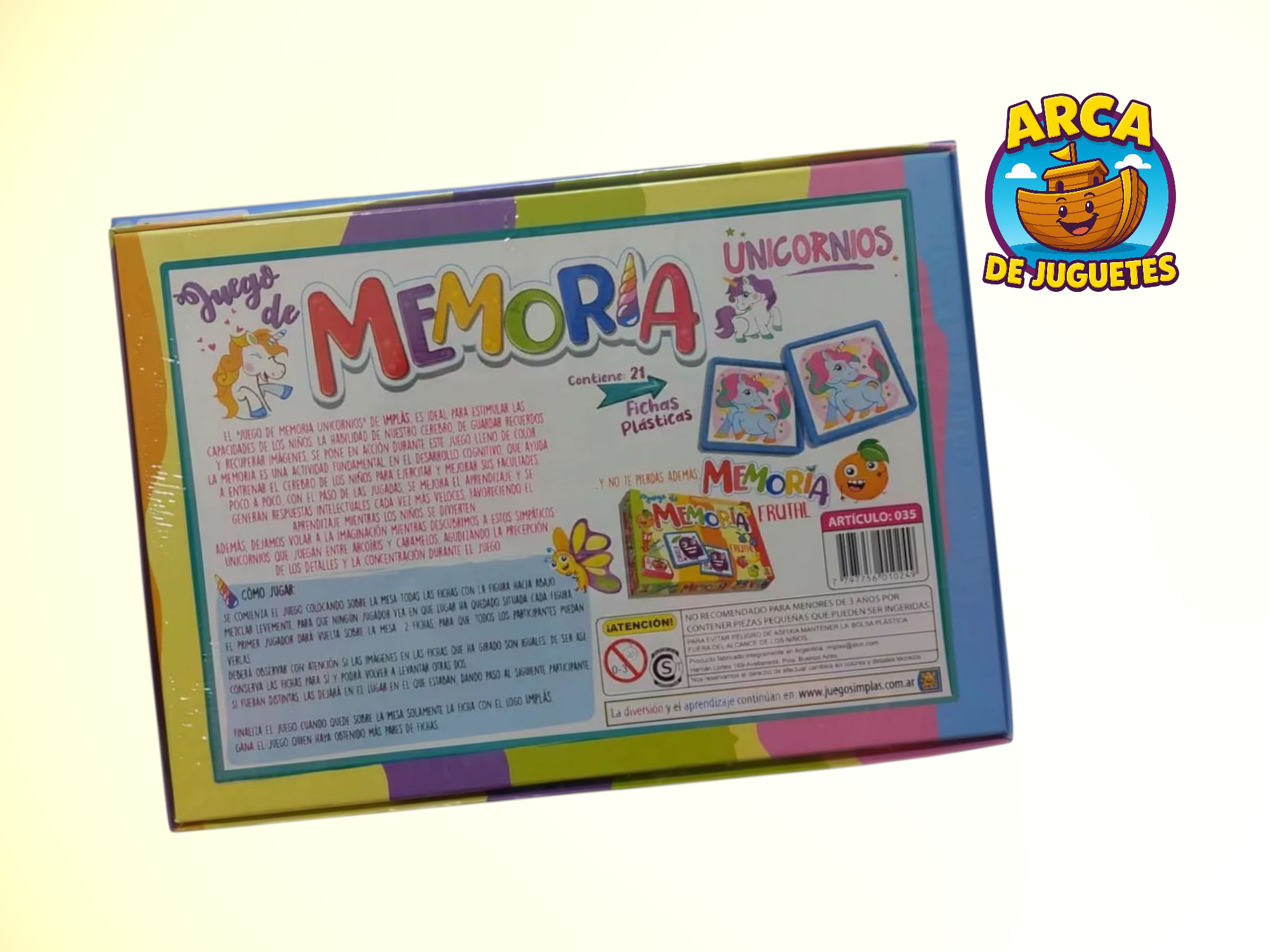 Este juego de marca Implas estimula la memoria, la concentración y las habilidades cognitivas de los niños al ejercitar su capacidad de guardar y recuperar información. Además, las adorables ilustraciones de unicornios hacen el juego atractivo y capturan la imaginación de los más pequeños, convirtiéndolo en una actividad educativa y entretenida.