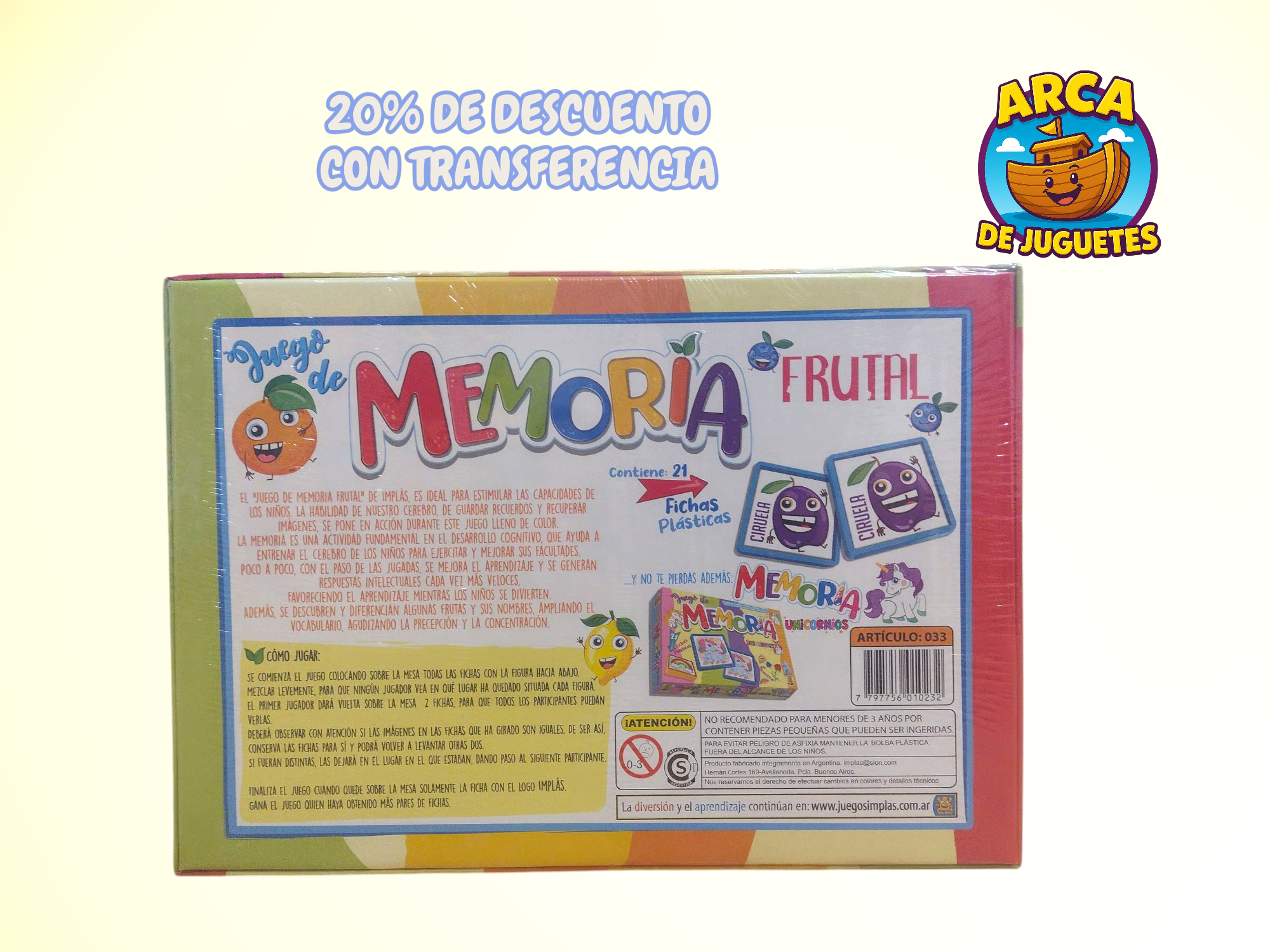Este juego de marca Implas estimula la memoria, la concentración y las habilidades cognitivas de los niños al ejercitar su capacidad de guardar y recuperar información. Además, las adorables ilustraciones de unicornios hacen el juego atractivo y capturan la imaginación de los más pequeños, convirtiéndolo en una actividad educativa y entretenida.