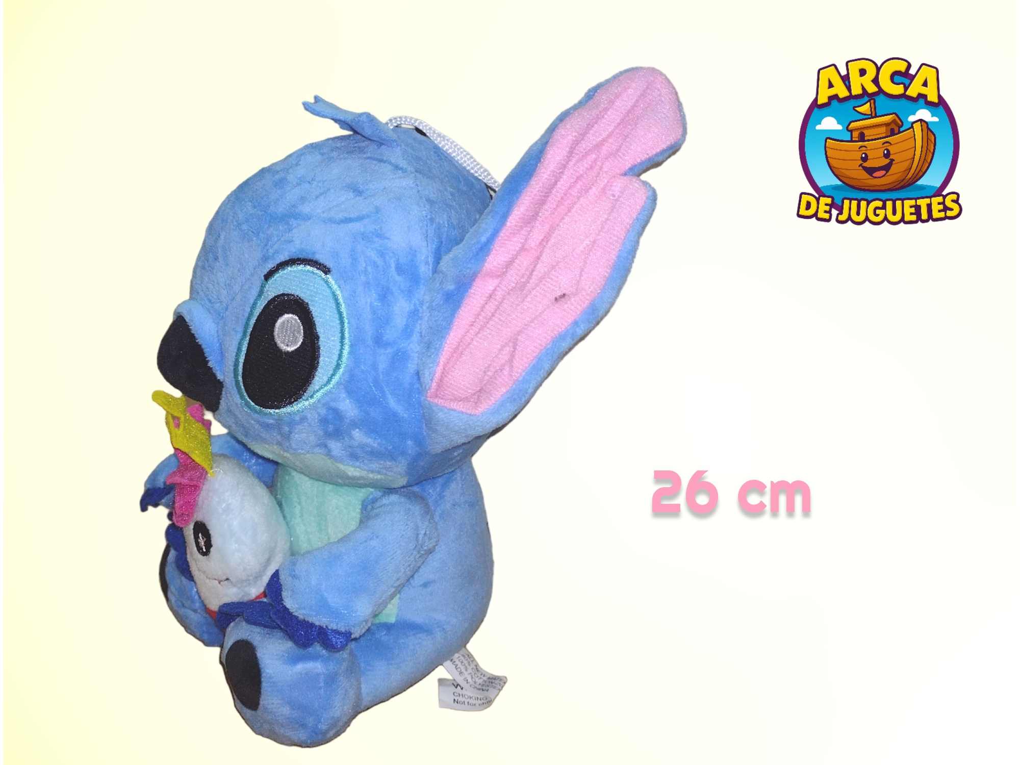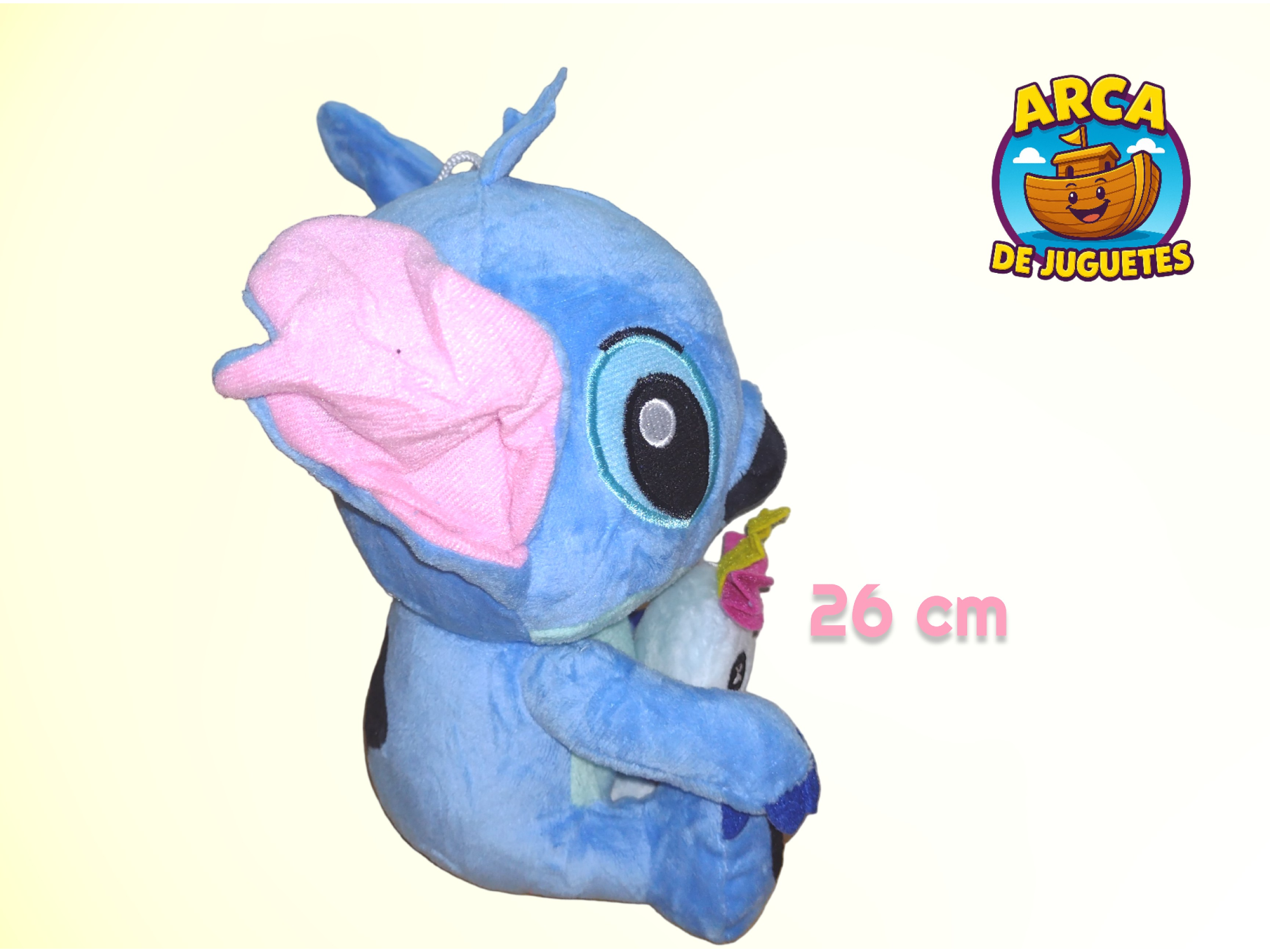Este peluche de Stitch lleva su mascota en los brazos y es perfecto para los fans de Lilo & Stitch. Confeccionado en felpa de alta calidad, suave y abrazable, es ideal tanto para niños como para coleccionistas.