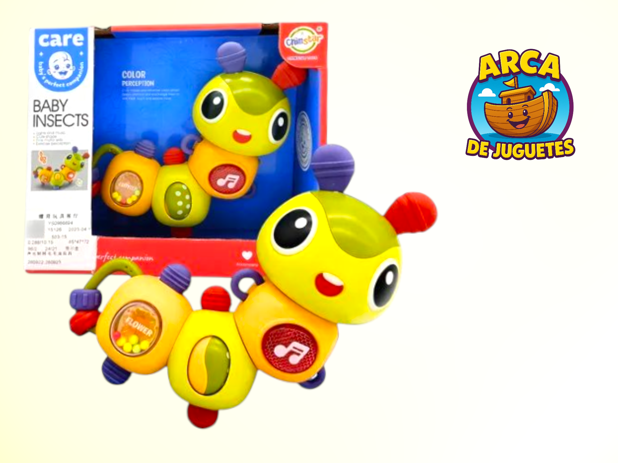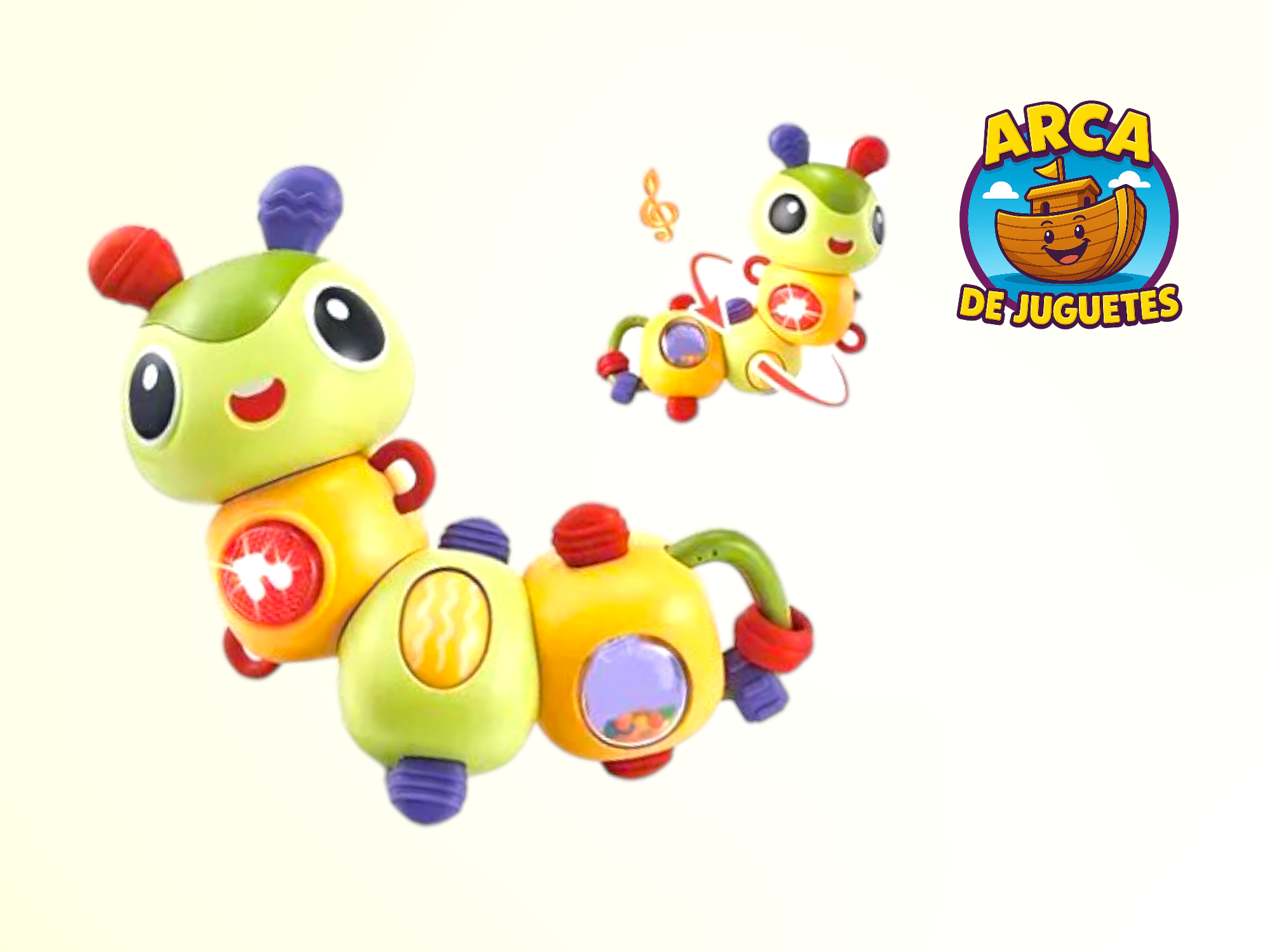 OrugaEs un juguete diseñado para bebés, con el objetivo de estimular la percepción del color y el desarrollo sensorial. Gira todo con sonajero, música y luz. Ideal a partir de 1 año$22.500 Observaciones 0 / 150