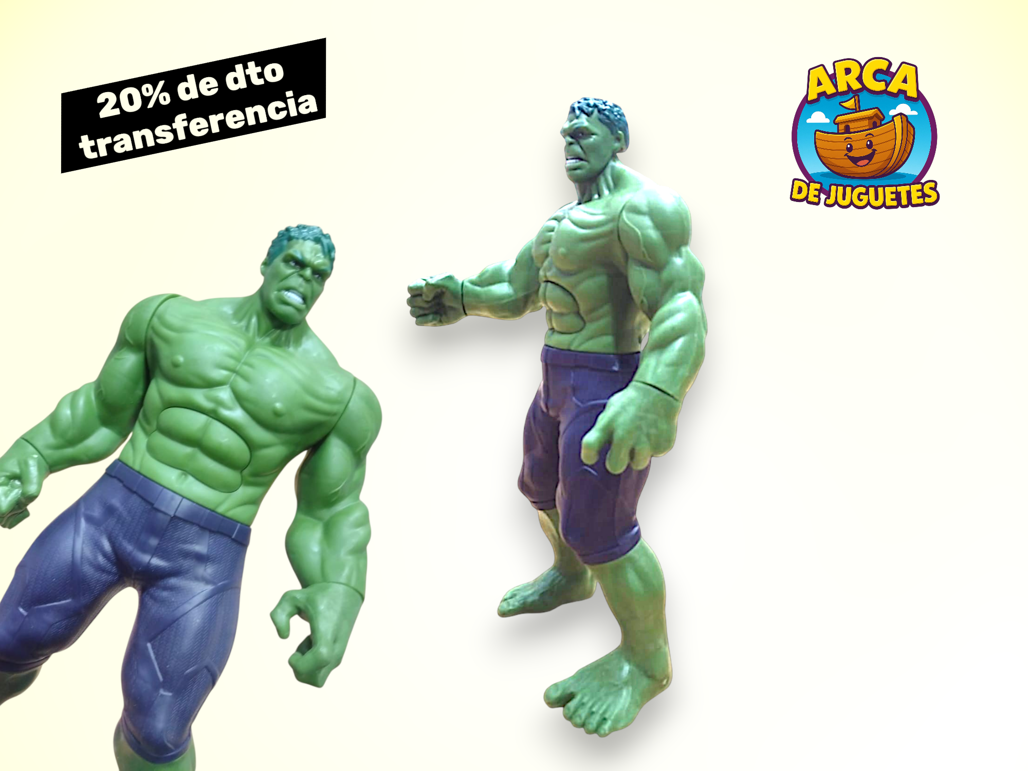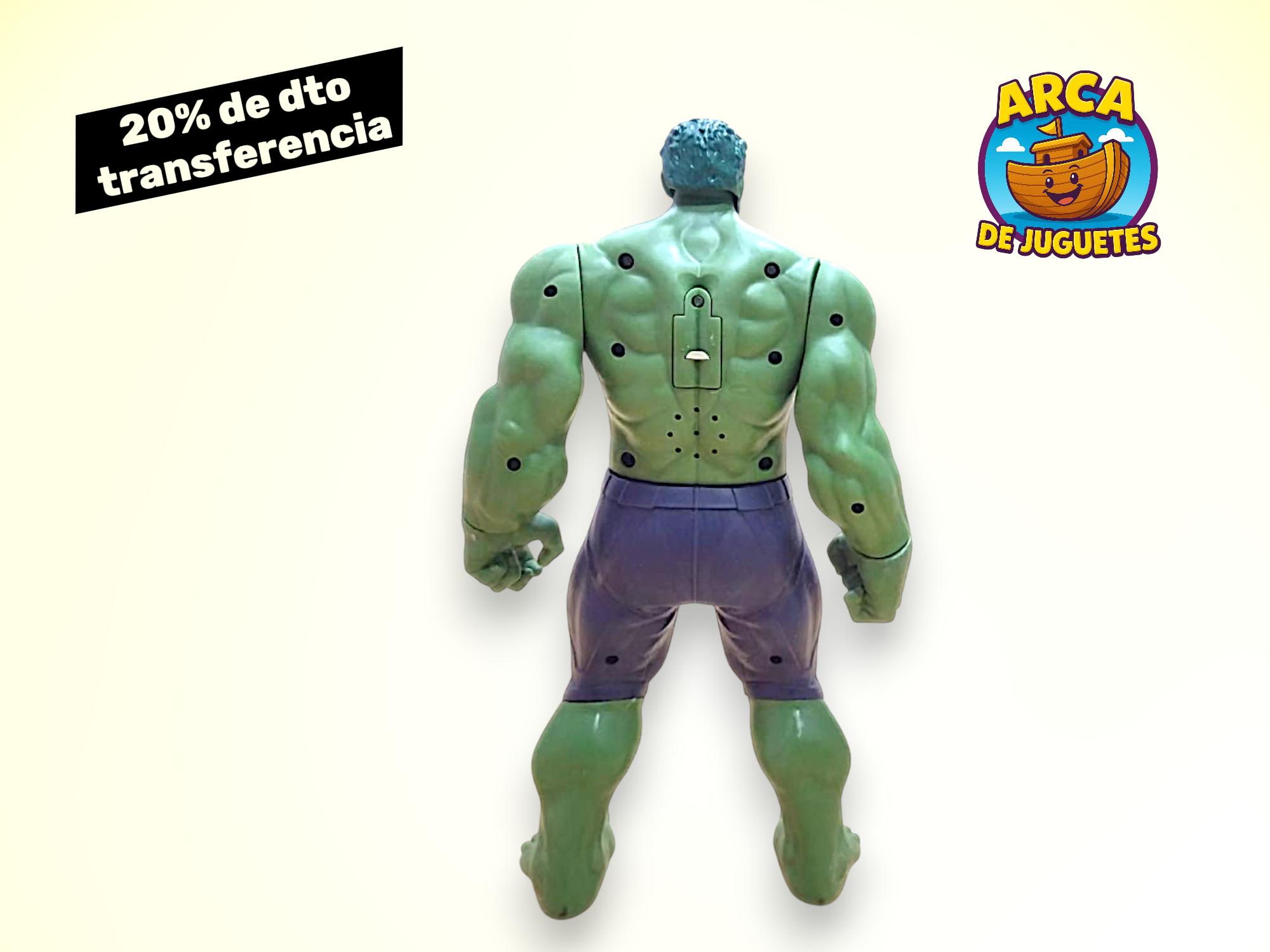 Desatá toda la fuerza del increíble Hulk con esta impresionante figura de 30 cm que incluye luces y sonidos. Reviví sus rugidos y su poder imparable en cada batalla contra villanos como Thanos o Loki.