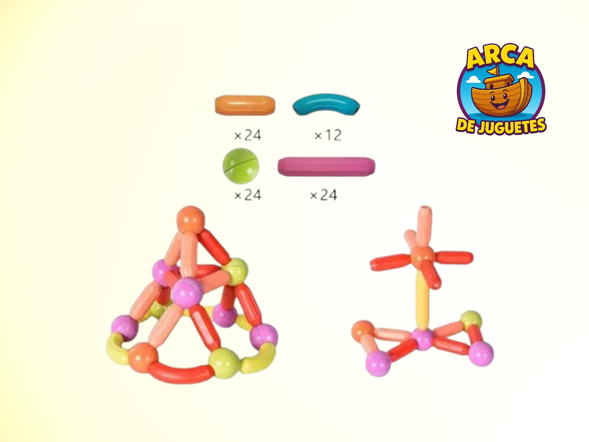 Incluye barras y pelotas imantadas de gran tamaño, diseñadas con materiales de excelente calidad y 100% seguros para niños.