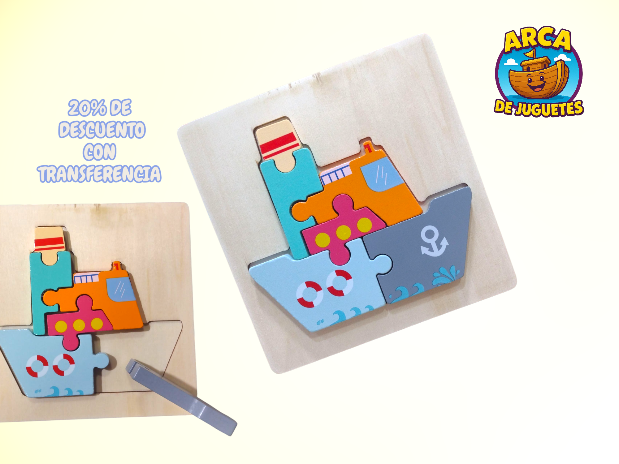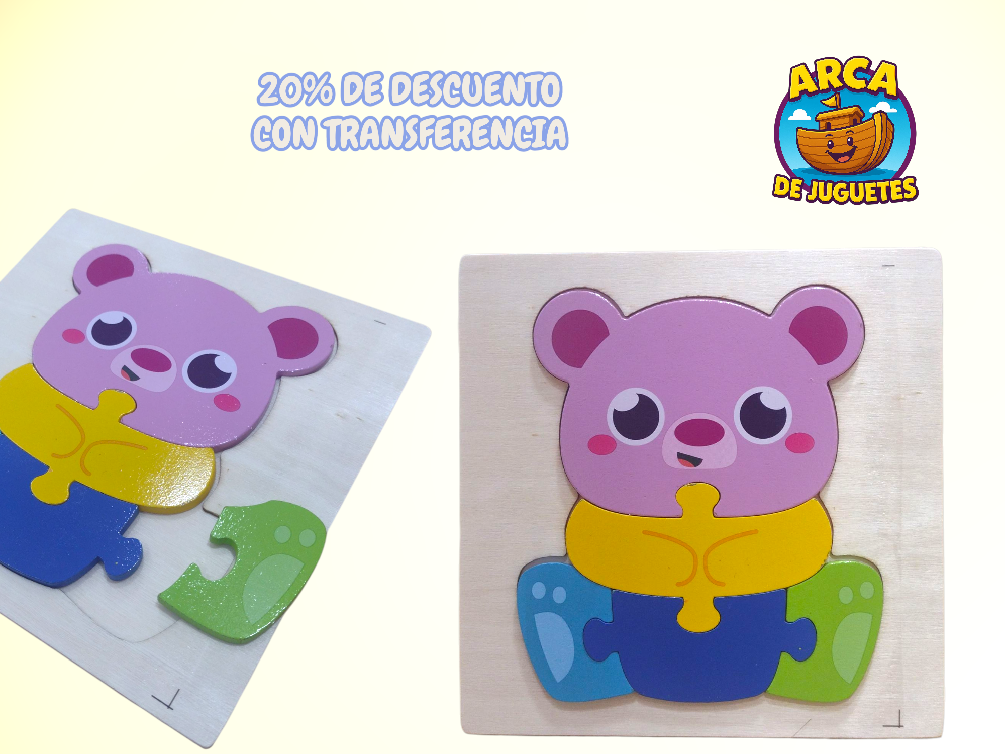 Estos rompecabezas de madera son ideales para estimular la concentración, la coordinación ojo-mano y el reconocimiento de figuras en los más chicos.