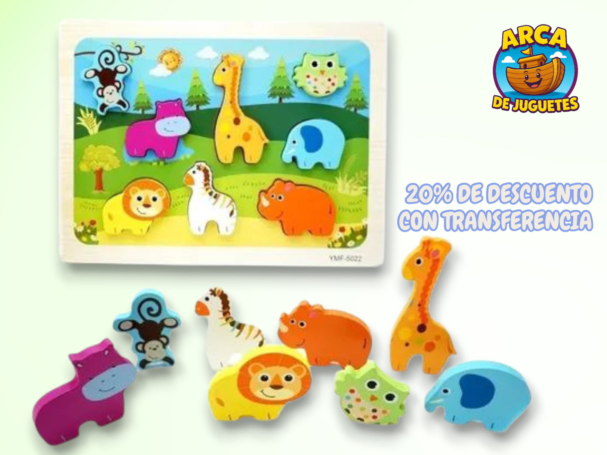 Este encastre de madera con animales del zoológico permite que los chicos encajen cada figura en su lugar ¡y también jueguen con ellas de pie!