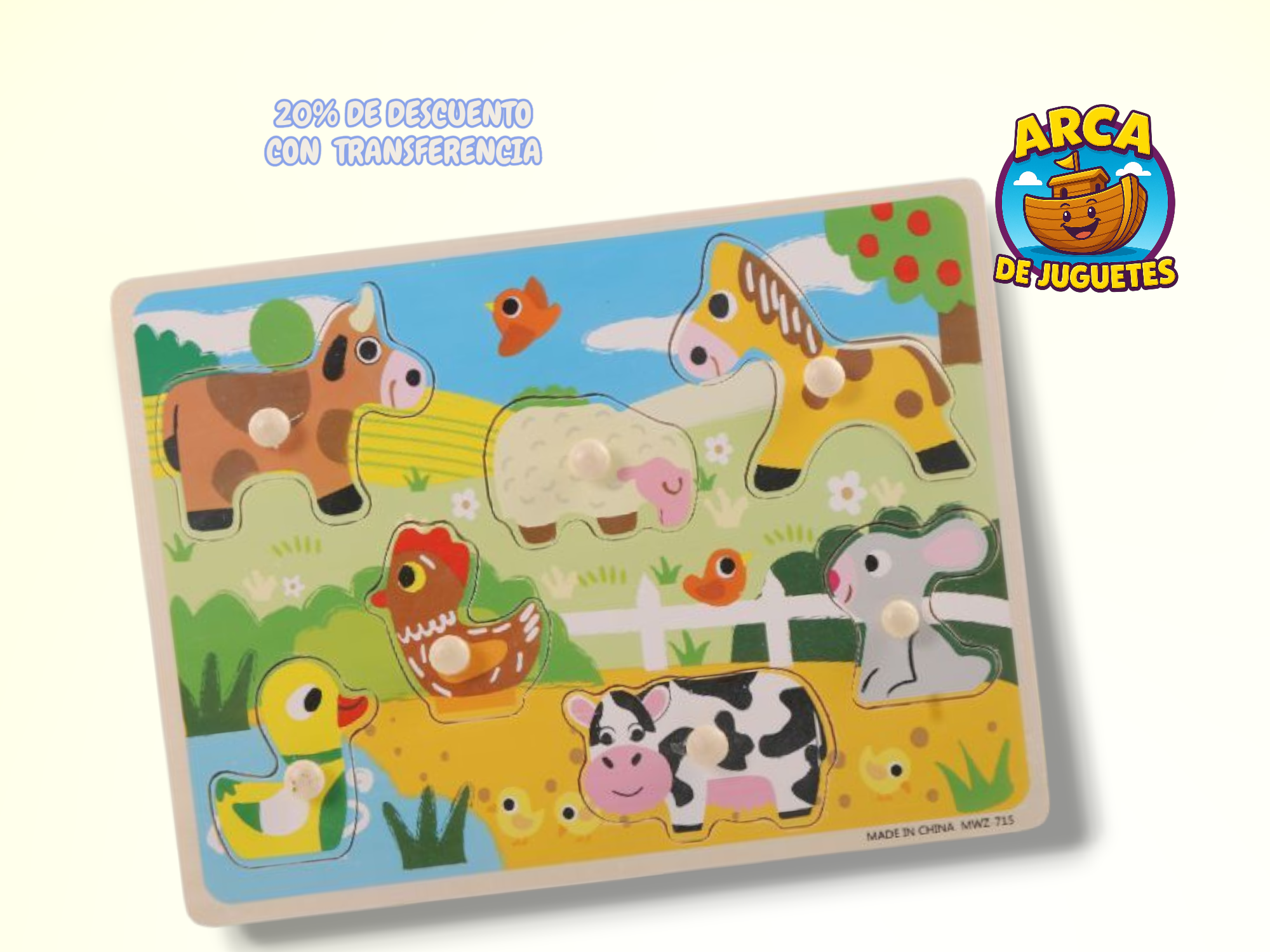 Ideal para que los más pequeños aprendan mientras se divierten encastrando figuras de animales, vehículos y objetos cotidianos.