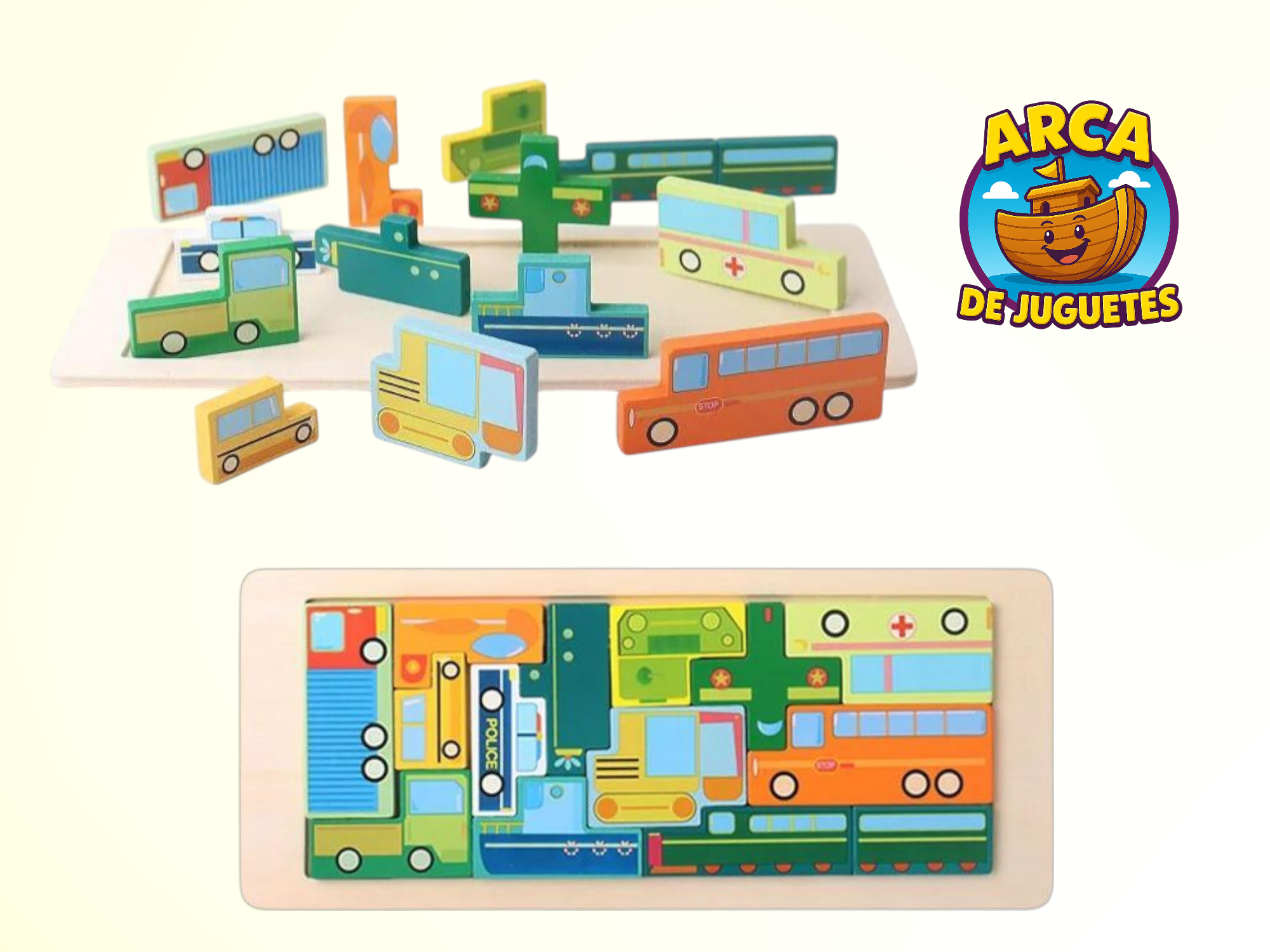 Animalitos o transportes para encastrar en la base de madera