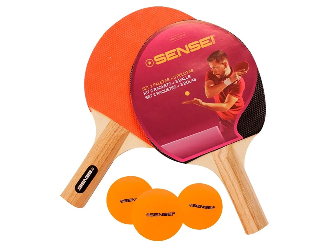SET PING PONG SENSEI 2+3INCLUYE: - 2 paletas 1 estrella con terminacion de 2 estrellas - 3 pelotas 2 estrellas$17.200 Observaciones 0 / 150