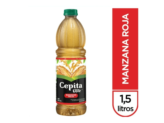 Jugos Cepita del Valle y Cepita Fresh Presentaciones Seleccioná las opciones que quieras.Jugo Cepita del Valle Manzana roja 1.5$3.500Jugo Cepita del Valle Manzana Roja 1.5$3.500Jugo Cepita del Valle Durazno Delicioso 1.5$3.500Jugo Cepita del Valle Naranja Tentación 1.5$3.500Jugo Cepita Fresh Naranja1.5$2.500Jugo Cepita Fresh Sabor Pomelo 1.5$2.500Jugo Cepita Fresh sabor Manzana 1.5L$2.500 Observaciones 0 / 150