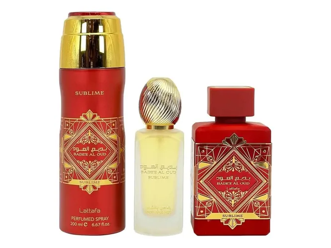 Bade'e Al Oud Sublime, lanzada en 2023 por Lattafa Perfumes, es una fragancia de la familia olfativa Amaderada Aromática diseñada tanto para hombres como para mujeres. Con una calificación de 4.32 sobre 5 y basada en 783 votos, esta fragancia destaca por su equilibrio entre notas frutales y florales, orientada a aquellos que buscan una presencia única y distinguida.